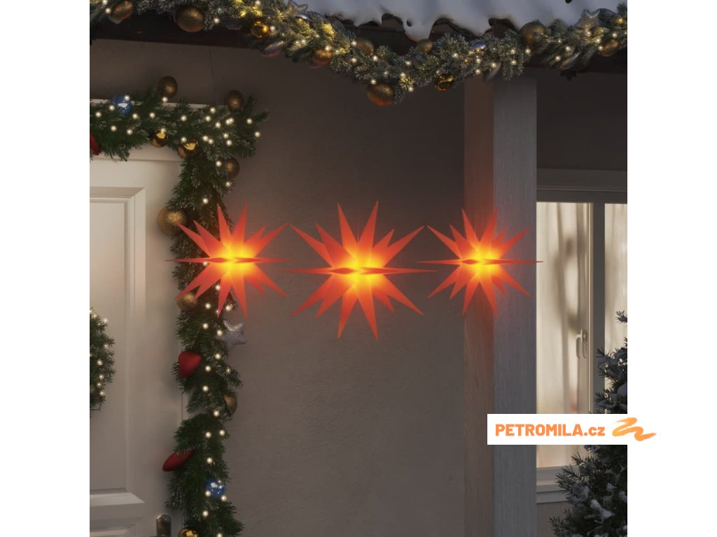 Svítící vánoční hvězdy s LED 3 ks skládací červené