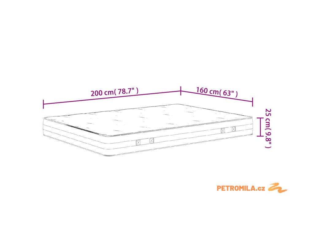 - Rozměry: 160 x 200 x 25 cm (Š x D x T)