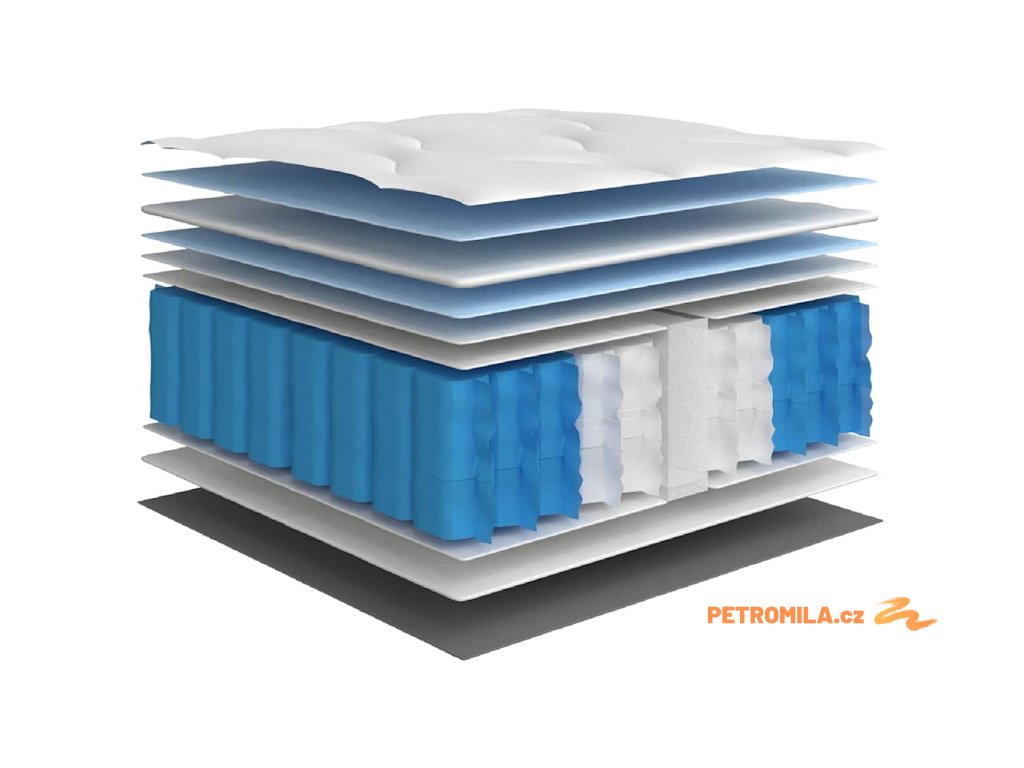 - Výplňový materiál: taštičkové pružiny, pěnový molitan, izolační podložka