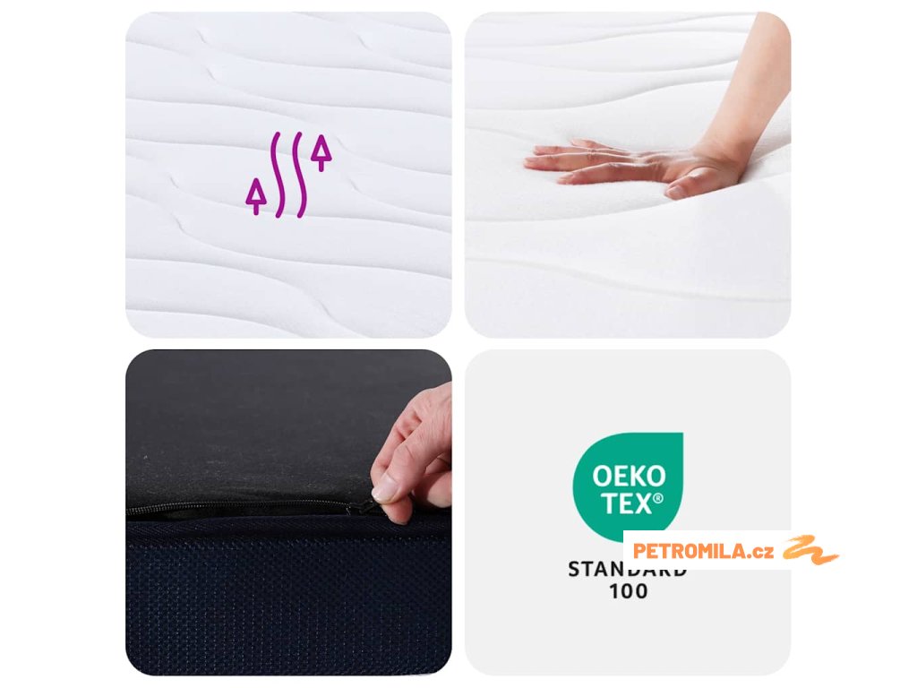 - Snadná údržba: Matrace z pružinové pěny je vybavena dlouhým zipem, který umožňuje snadné sejmutí potahu pro vyprání.