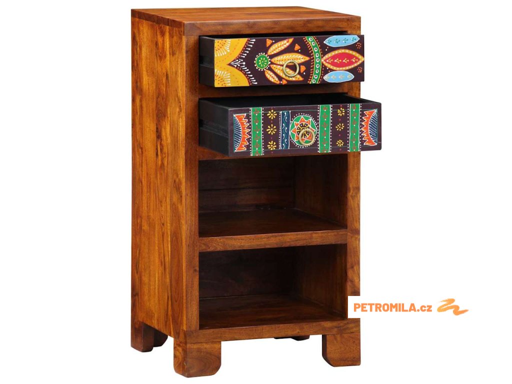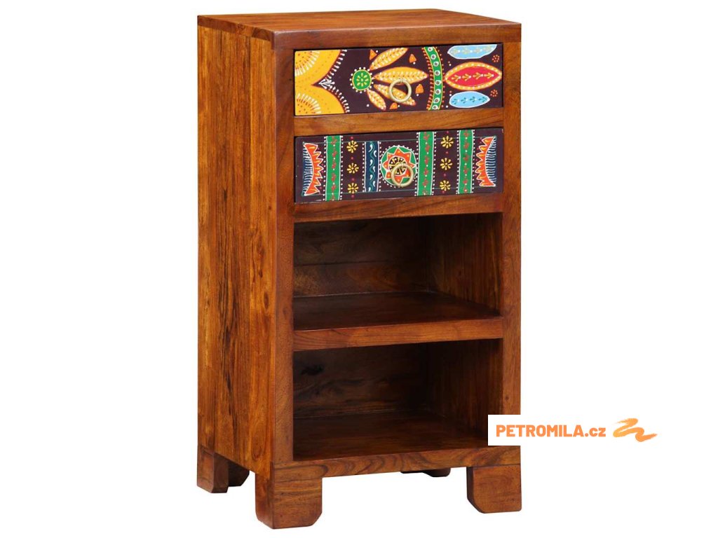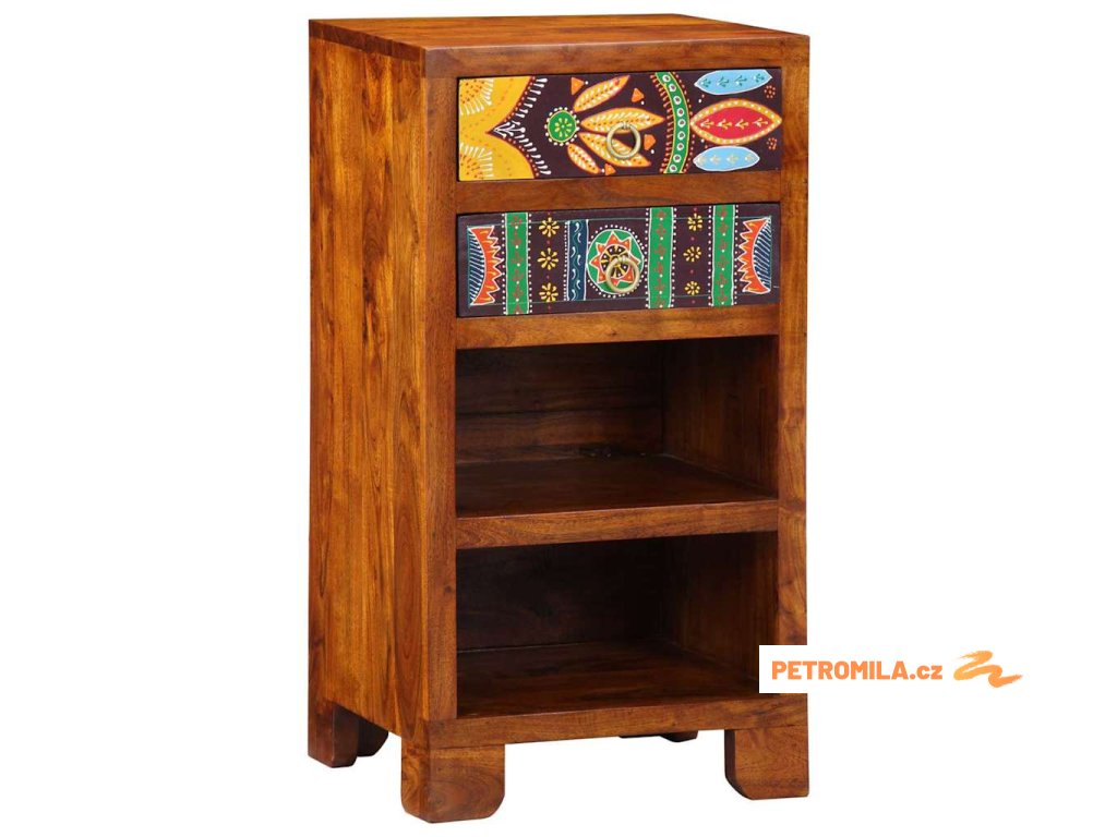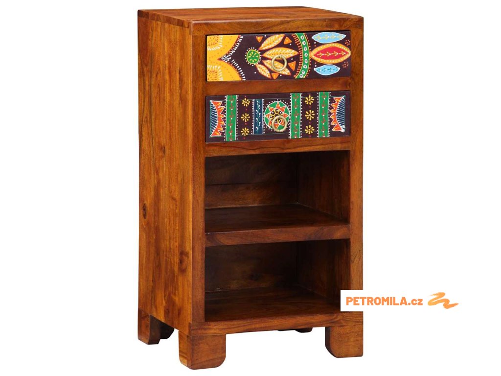 Tento elegantní odkládací stolek míchá tradiční prvky s moderní jednoduchostí, což z něj dělá univerzální doplněk pro různé prostory v domě. Kousek je pečlivě zpracovaný a spojuje styl a funkčnost. Jeho pestré zásuvky přidávají barvu proti tmavému akáciovému dřevu. Postavený na svém místě v ložnici nebo obýváku je skvělým místem pro lampy, nápoje nebo telefon. Nadčasový design se bez problémů hodí do jakéhokoli interiéru a zajišťuje spolehlivou praktickost.
