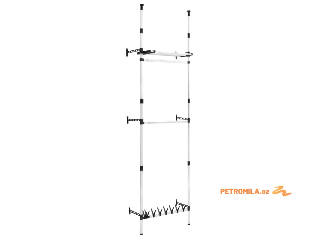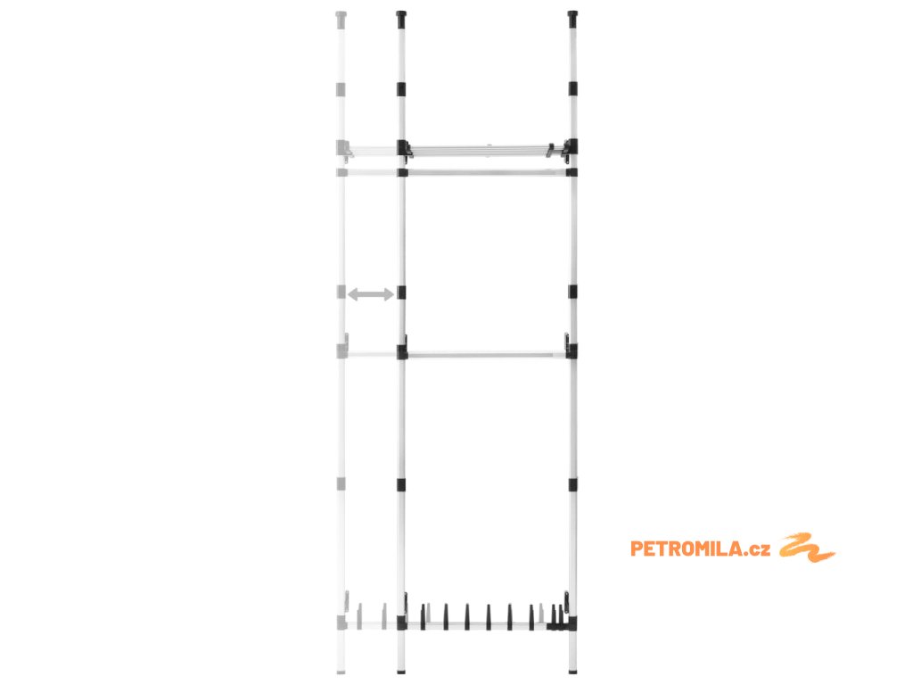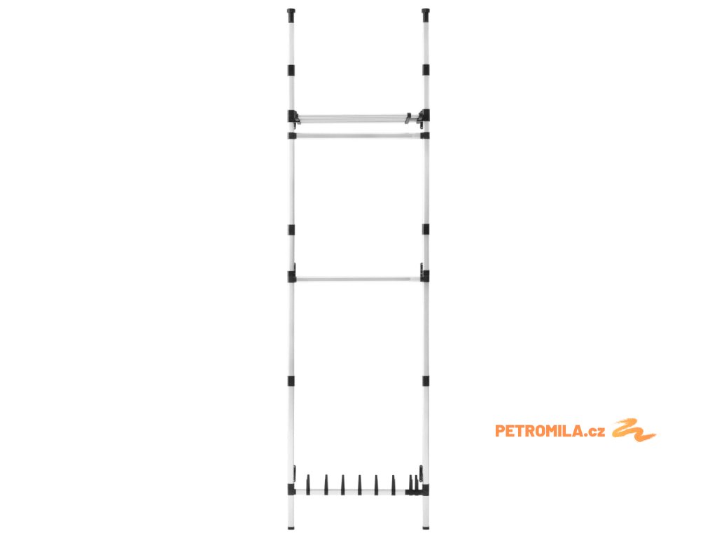 Teleskopický šatní úložný systém s tyčemi a policí hliník