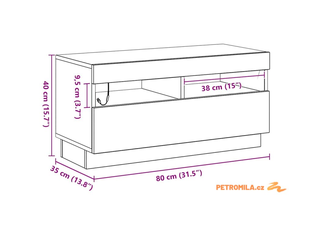 - Celkové rozměry: 80 x 35 x 40 cm (D x Š x V)