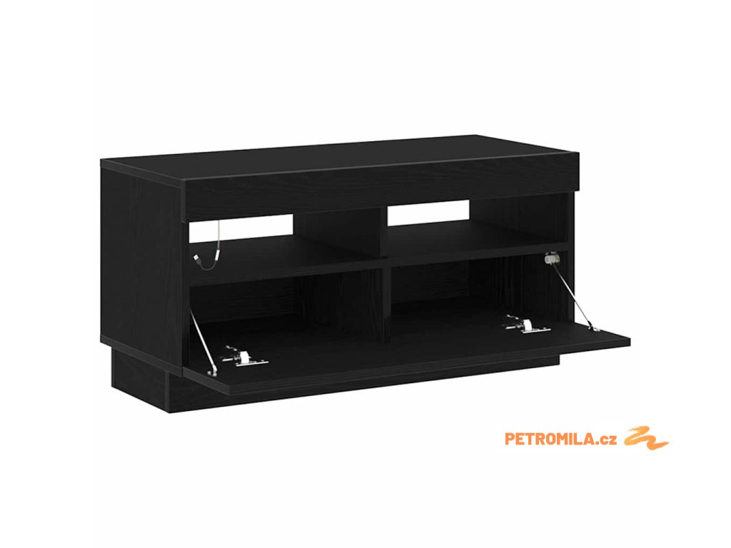 - Hladké bezfalcové dveře: Stojan má hladké bezfalcové dveře na úložiště, které drží vše pěkně pohromadě. Otevírají se snadno a zvyšují moderní styl, hezky pasují k ostatnímu nábytku. Ulož si dálkové ovladače a kabely, a tvůj obývací pokoj bude uklizený.