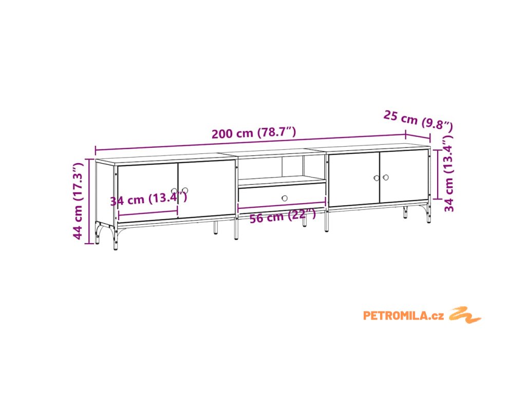 Televizní skříň Černý dub 200 x 25 x 44 cm Kompozitní dřevo
