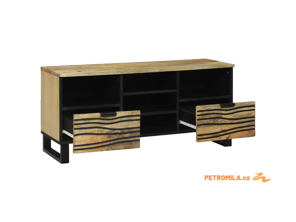 - Výrazný design: Černé železné nohy a vlnitá textura dělají z této skříně skvělou volbu pro rustikální styl. S výškou 46 cm sedí akorát pro moderní ploché televize.