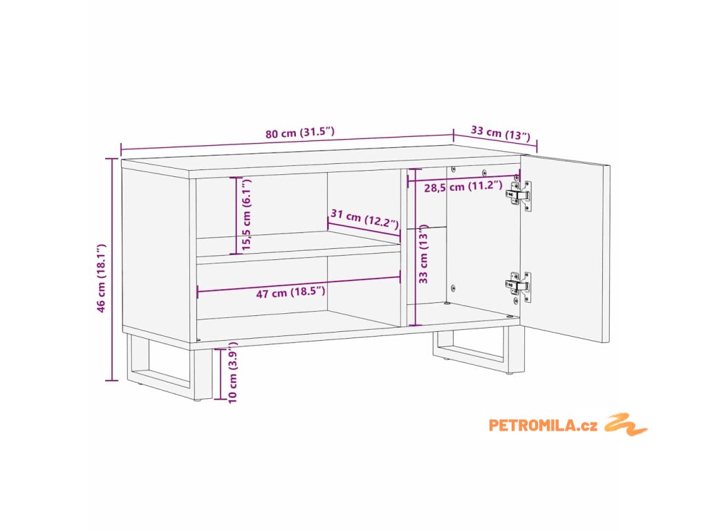 - Celkové rozměry: 80 x 33 x 46 cm (D x Š x V)