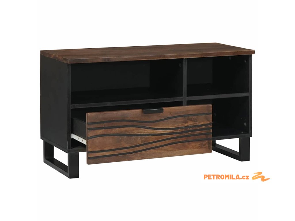 Tento televizní stolek spojuje rustikální kouzlo s praktickým úložným prostorem do obýváku. Vyrobený z masivního mangového dřeva, má texturovaný vzhled a je odolný, což dodává styl, který ctí jeho přirozenou krásu. Vlnité linie a černé akcenty mu dodávají hloubku a dělají z něj příjemnou součást tvé domácí výzdoby.