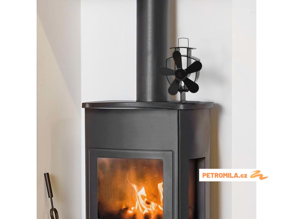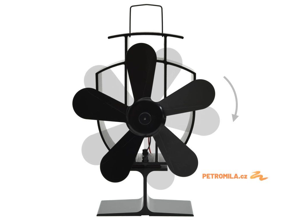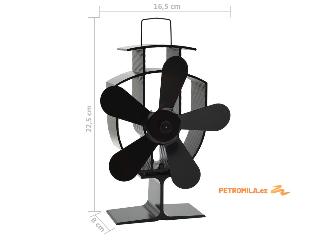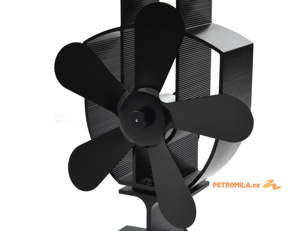 Teplem poháněný ventilátor na kamna 5 lopatek černý