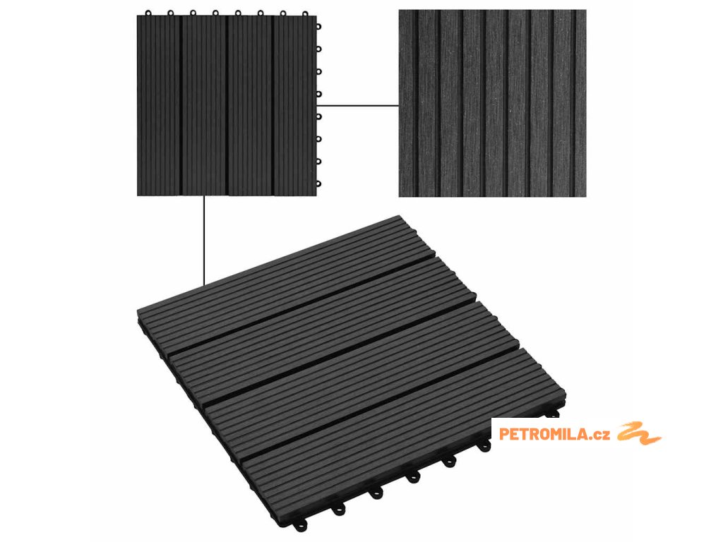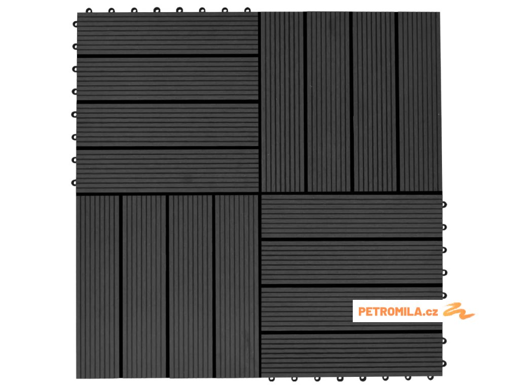 Terasové dlaždice z dřevoplastu 11 ks 30 x 30 cm 1 m² černé