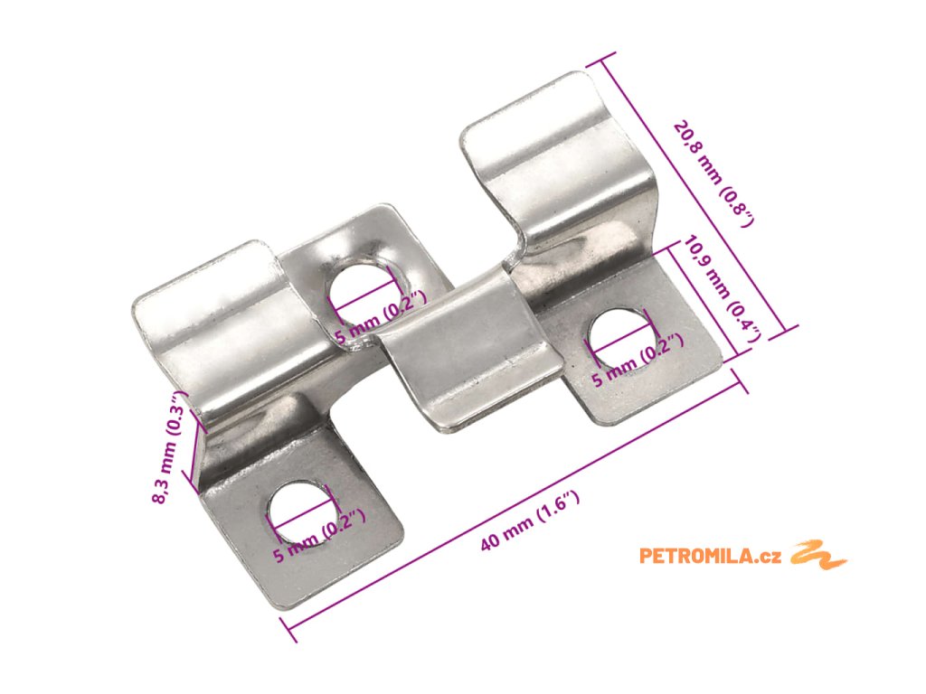 Součástí balení je 200 šroubů k připevnění klipů. Klipy i šrouby jsou vyrobeny z nerezové oceli, takže jsou vysoce kvalitní a nebudou postupem času rezivět nebo ztrácet účinnost. Naše klipy na rozdíl od plastových nemusíte pravidelně vyměňovat. Velice snadno se používají a každý stačí připevnit pouze dvěma šrouby.