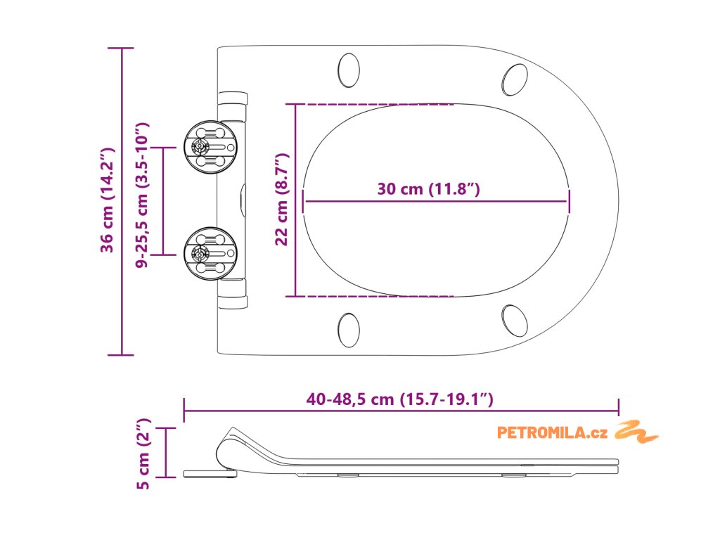 - Univerzální rozměry S rozměry 48,5 x 36 x 5 cm toto prkénko sedí na většině standardních toalet, takže je snadné ho do koupelny zakomponovat. Jeho neutrální design zajišťuje, že se hodí téměř do každé koupelny.