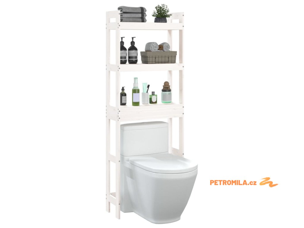 Toaletní regál bílý 63 x 26 x 171 cm masivní borové dřevo