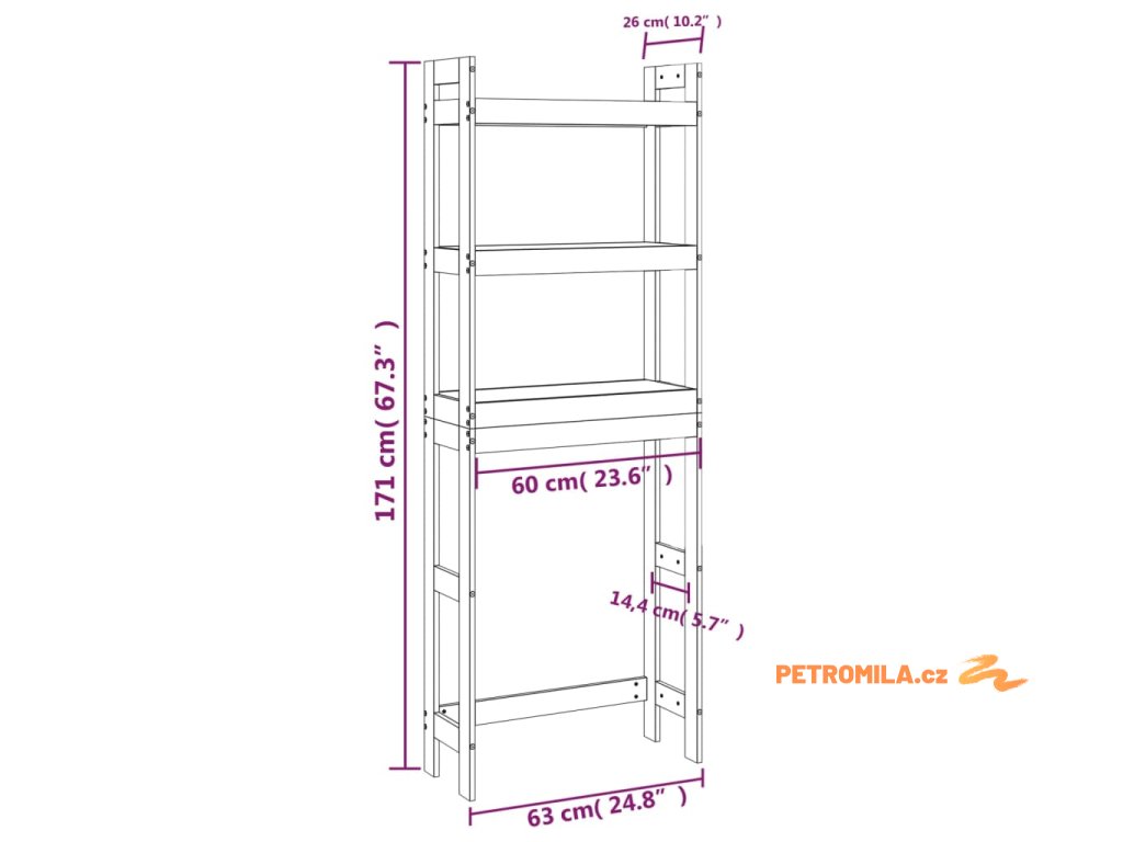- Rozměry: 63 x 26 x 171 cm (Š x H x V)