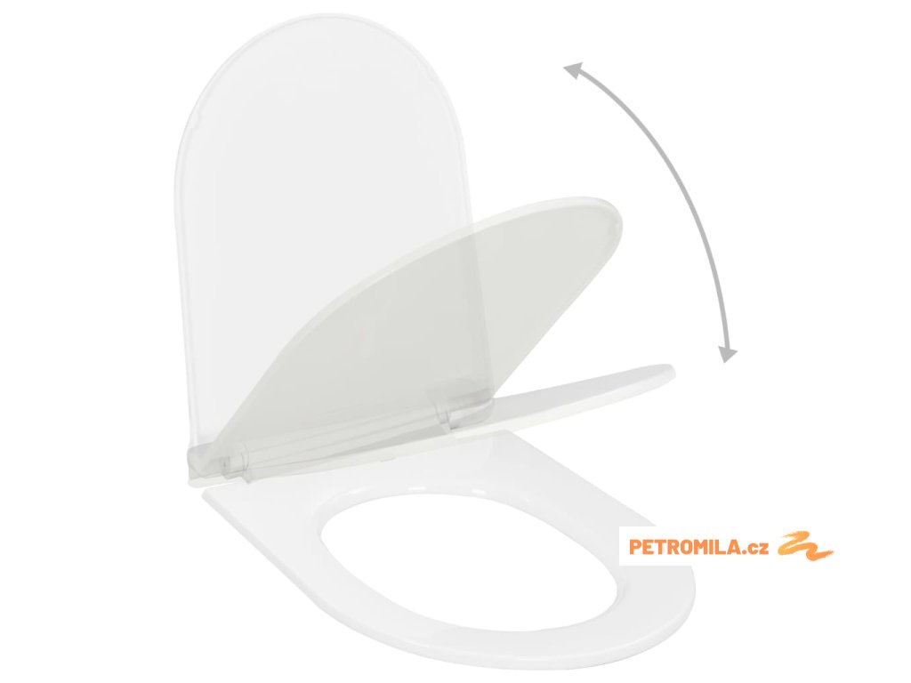 Záchodové prkénko je navržené s funkcí pomalého sklápění (soft-close), takže se zavírá pomalu a tiše. Jelikož má též rychloupínací design, lze ho snadno upevnit i sejmout pro snazší a pohodlnější čištění. Je vyrobené z pevného polypropylenu, který je zárukou dlouhé životnosti.