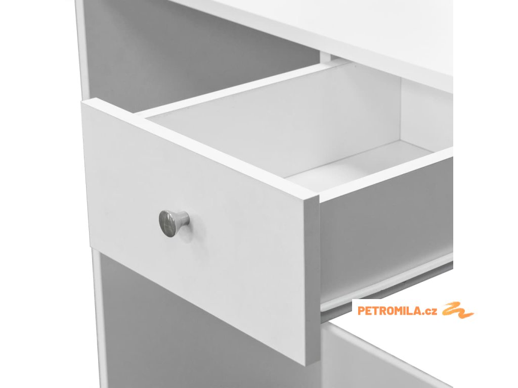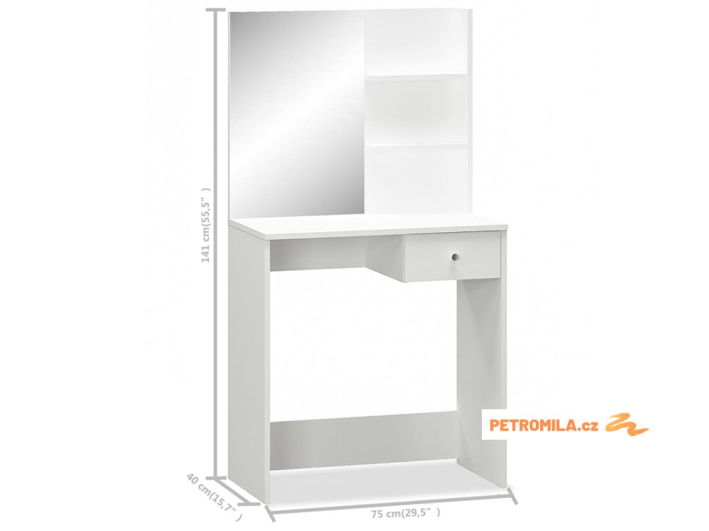 Toaletní stolek je vyroben z kompozitního dřeva s PVC hranami a je stabilní a odolný. Díky prostornému systému zásuvek a polic najdete dostatek úložného prostoru pro všechny vaše kosmetické přípravky a vše ostatní, co byste chtěli mít po ruce, takže nepořádek ve vaší ložnici nebude mít šanci.