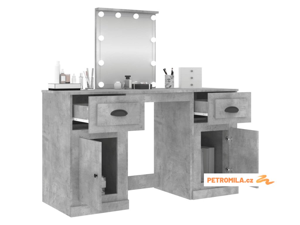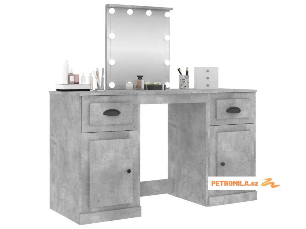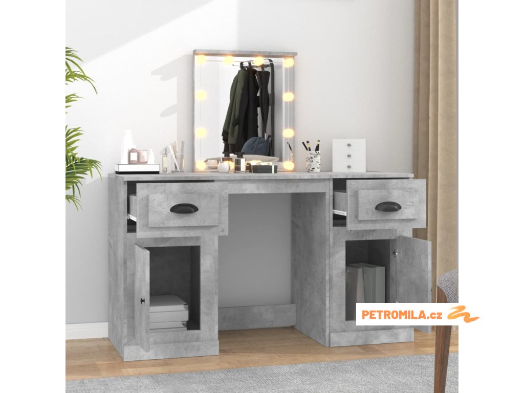 Toaletní stolek s LED betonově šedý 130 x 50 x 132,5 cm