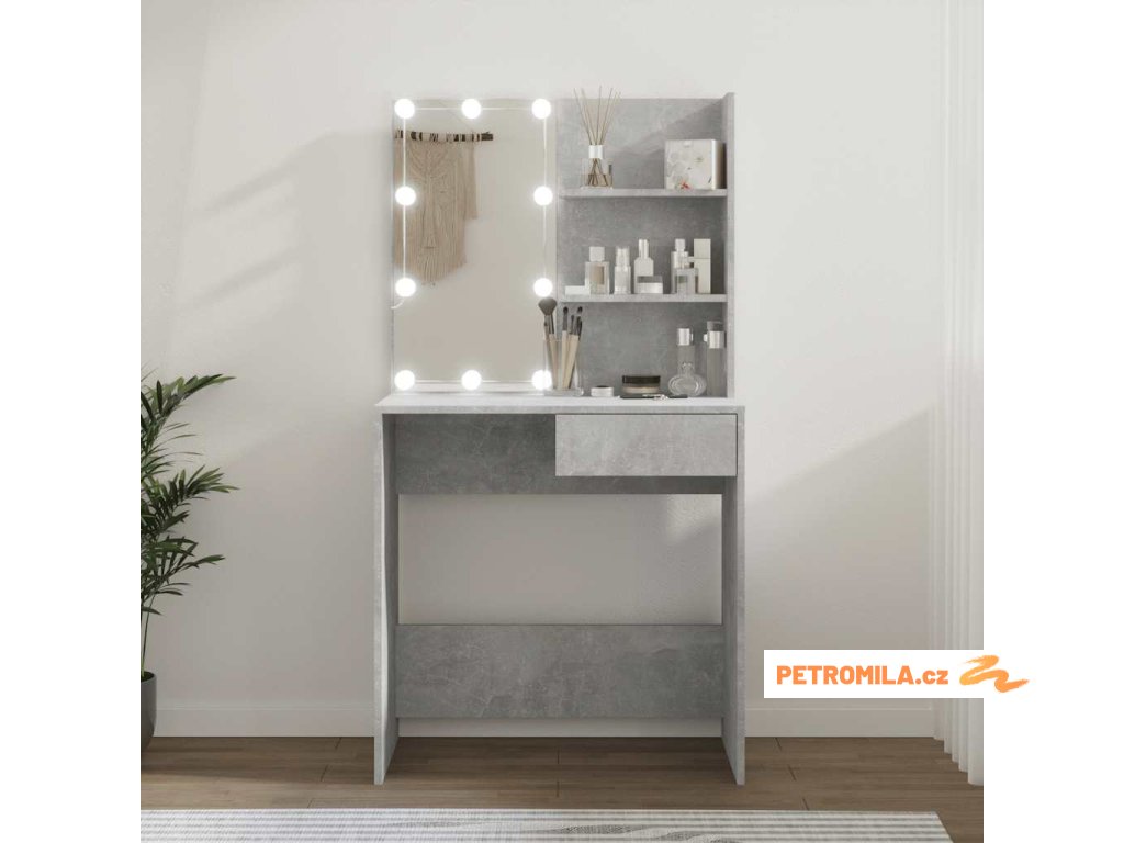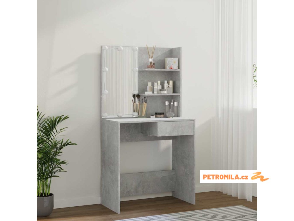 Toaletní stolek s LED betonově šedý 74,5 x 40 x 141 cm