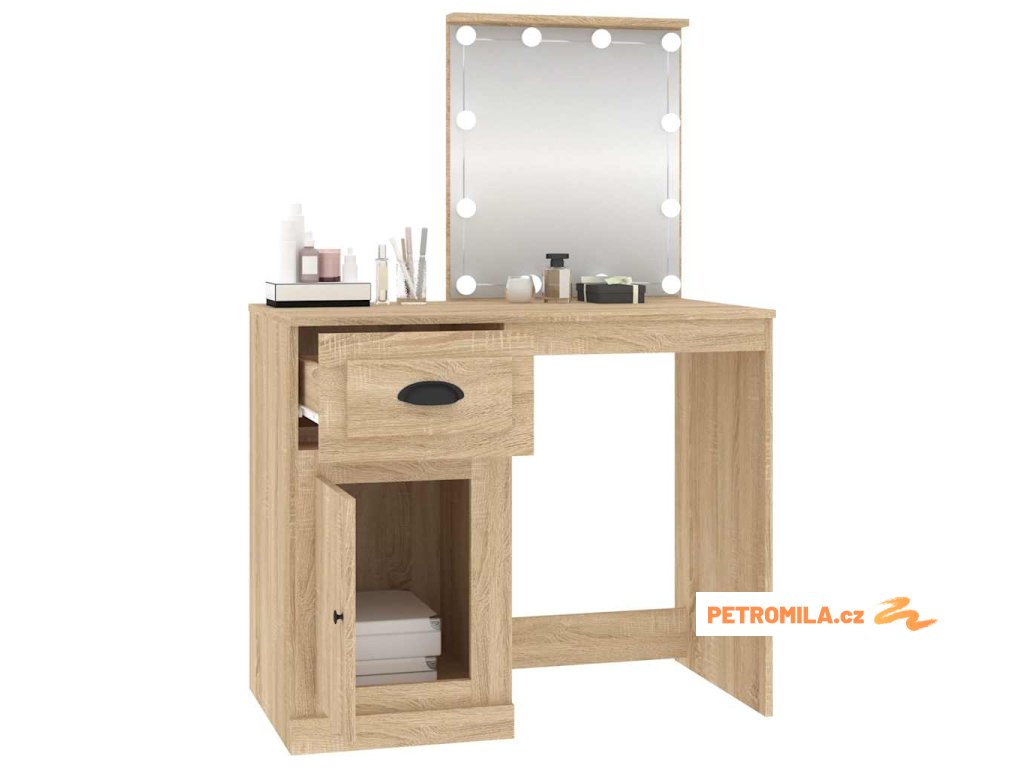 Toaletní stolek s LED dub sonoma 90 x 50 x 132,5 cm kompozit