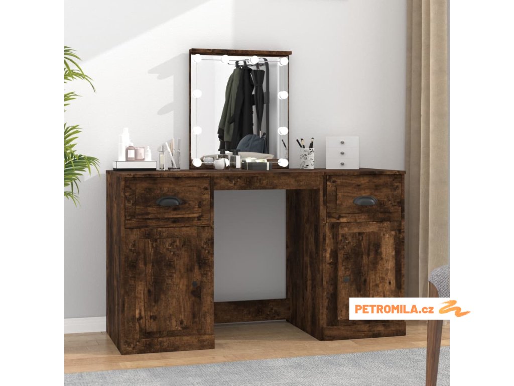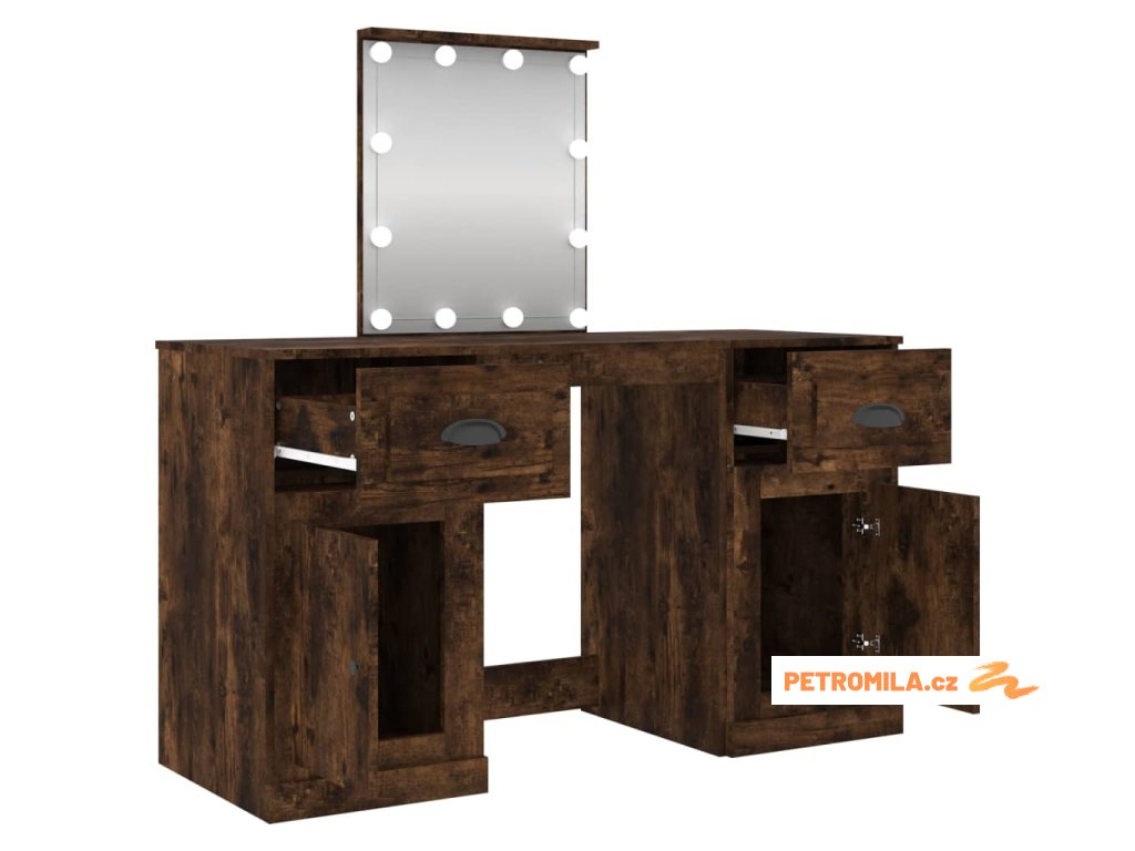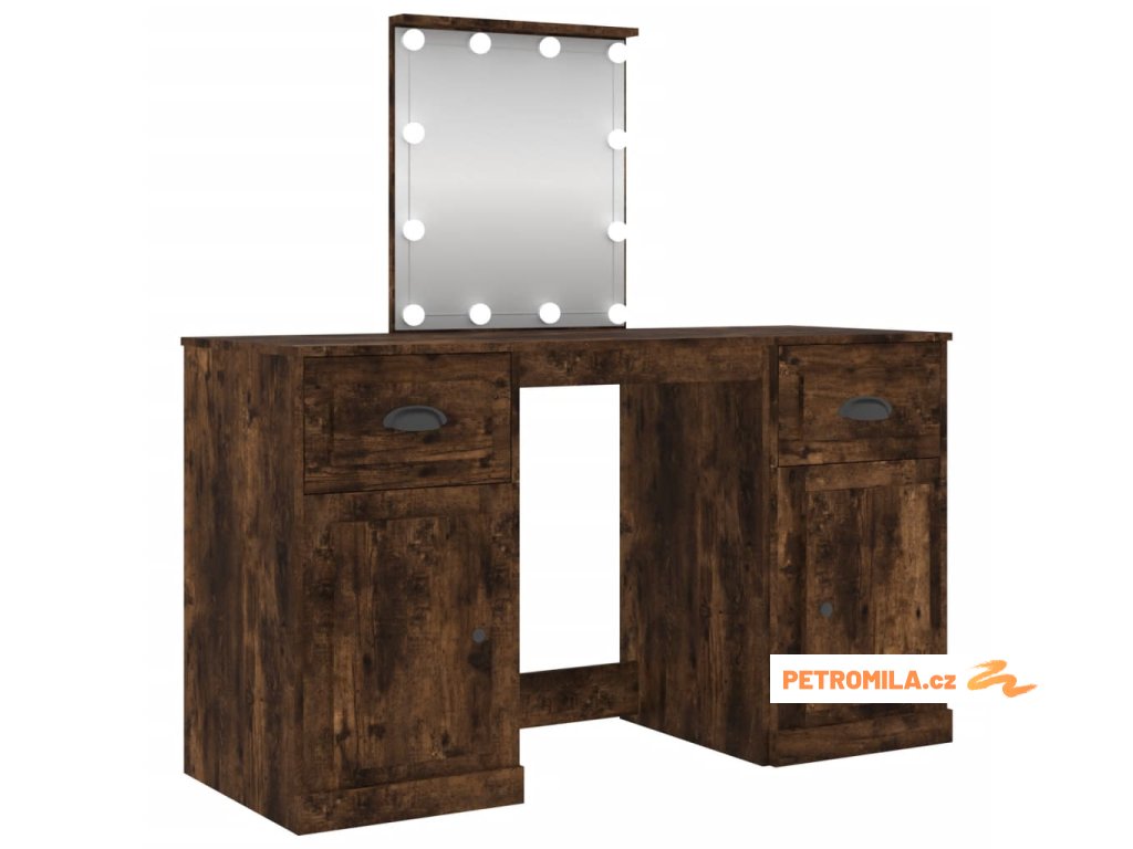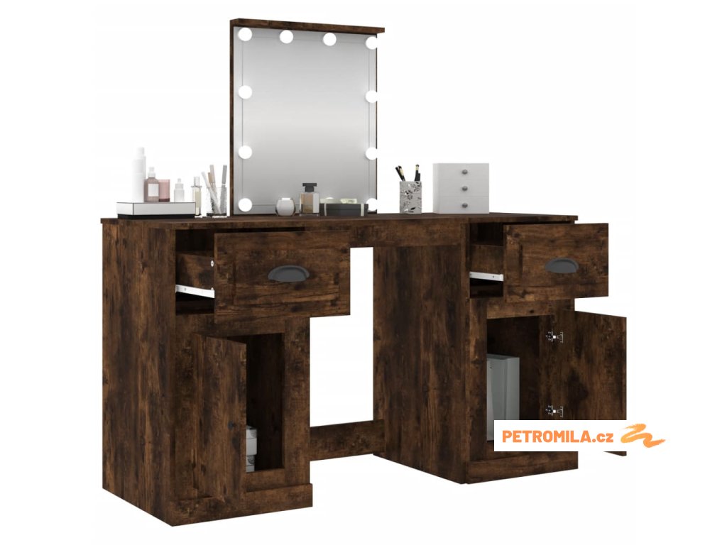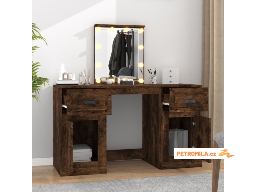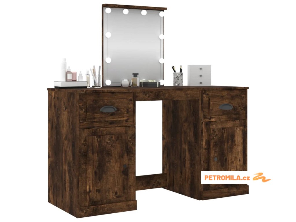 Toaletní stolek s LED kouřový dub 130 x 50 x 132,5 cm