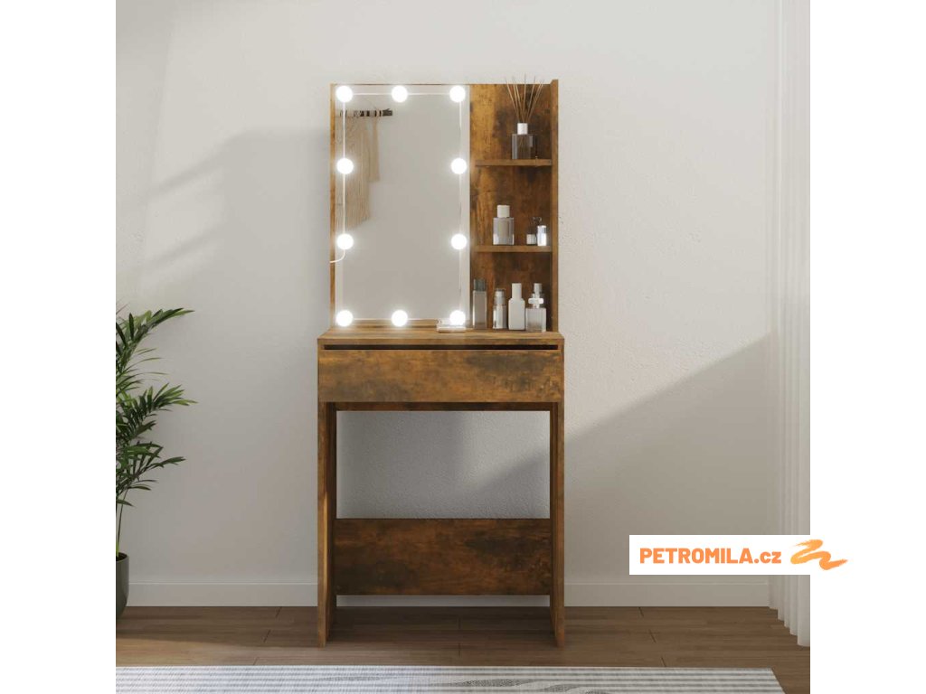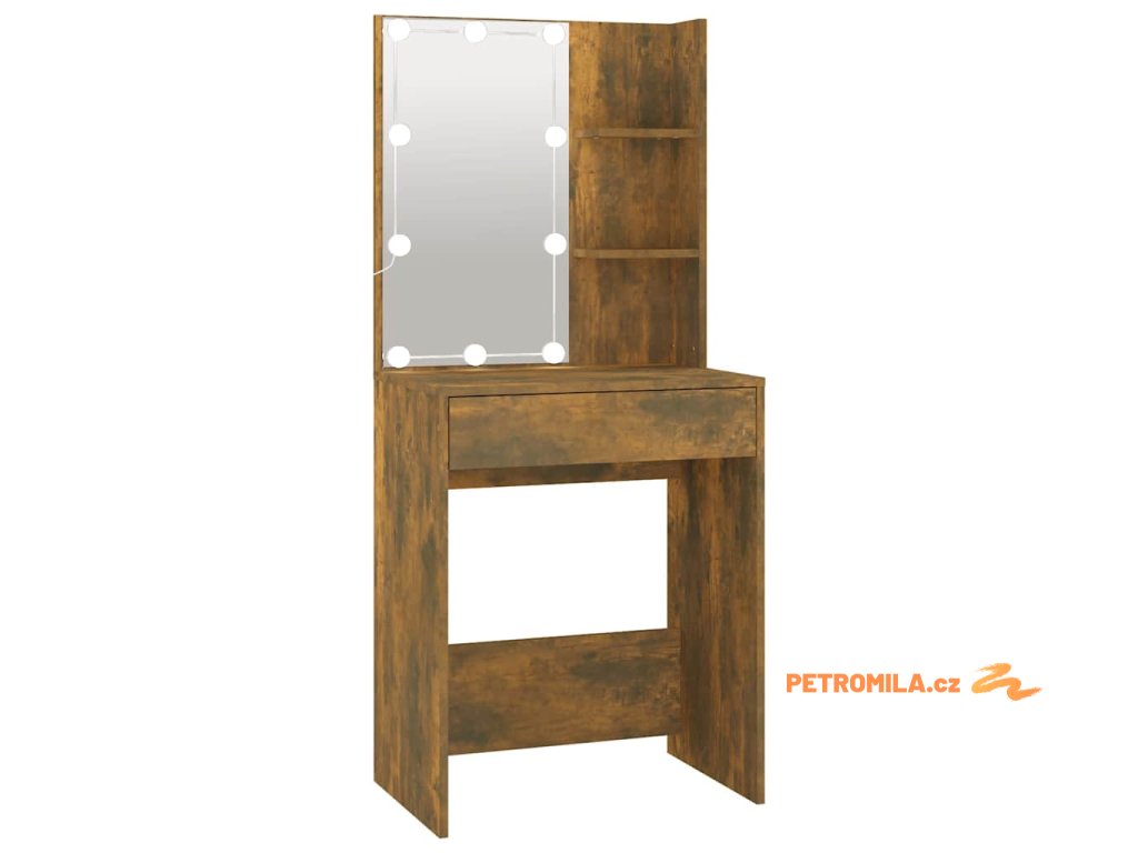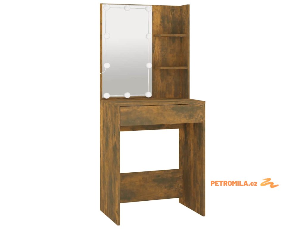 Toaletní stolek s LED kouřový dub 60 x 40 x 140 cm