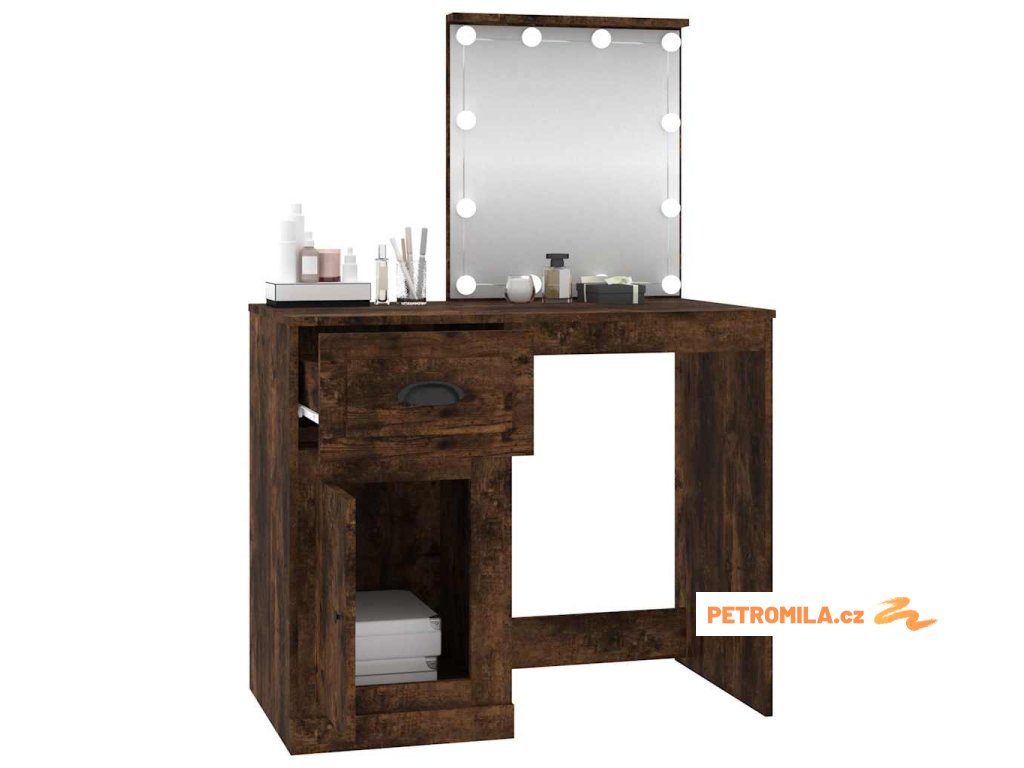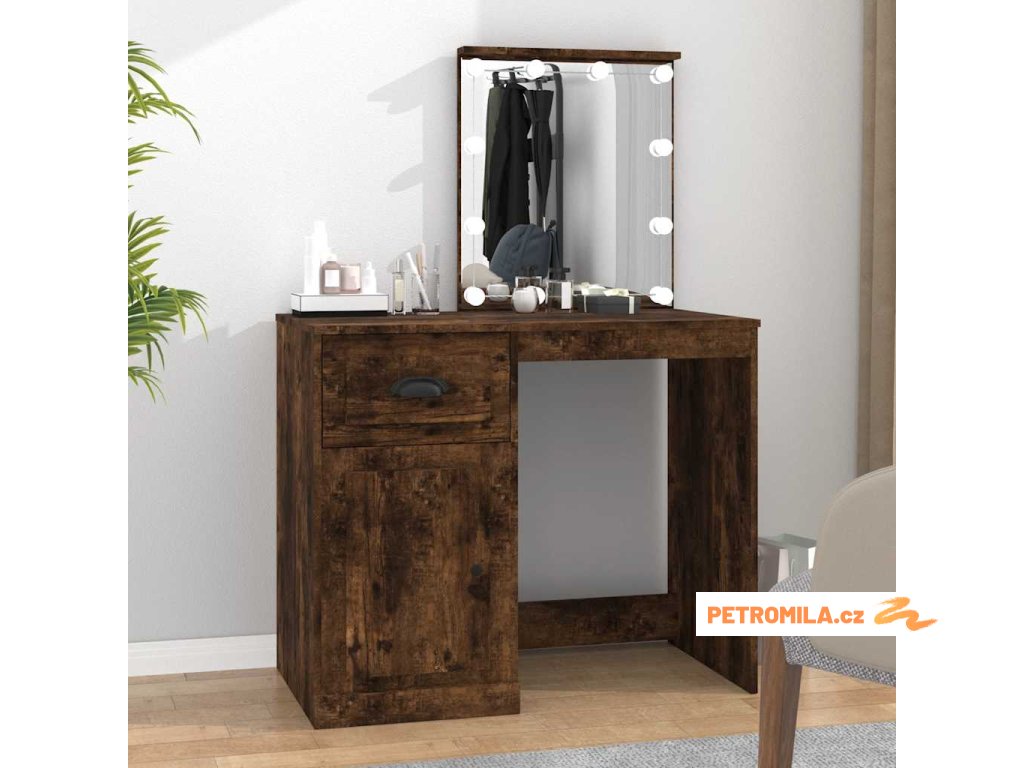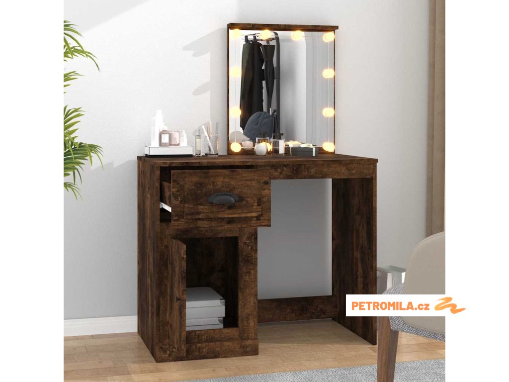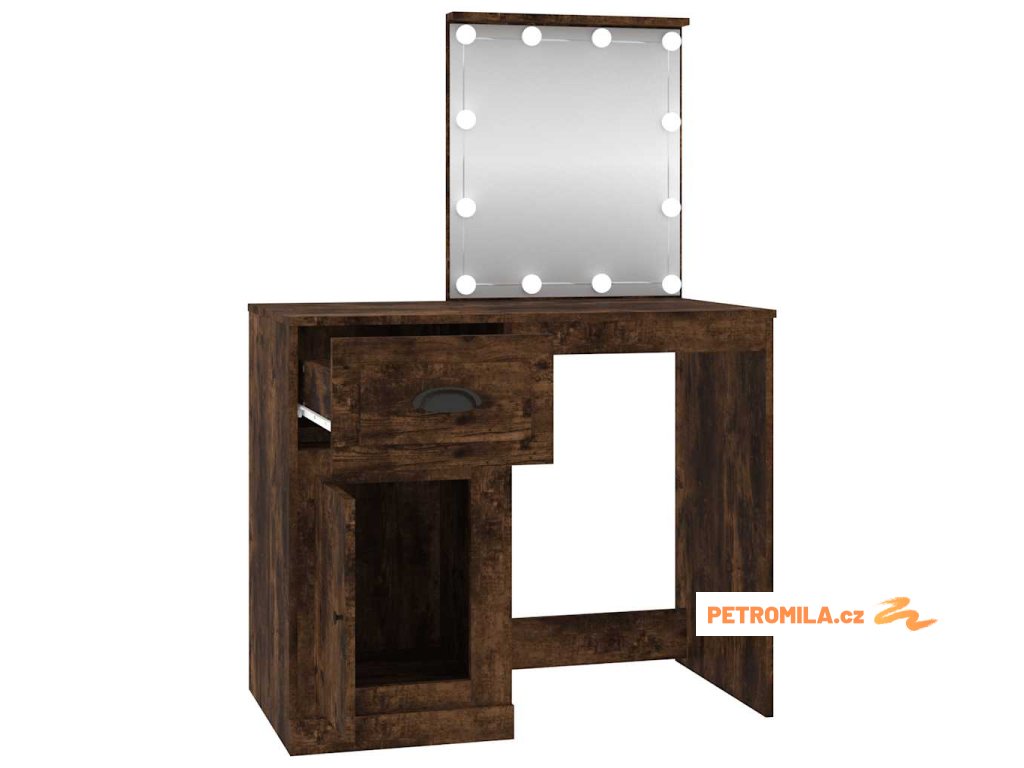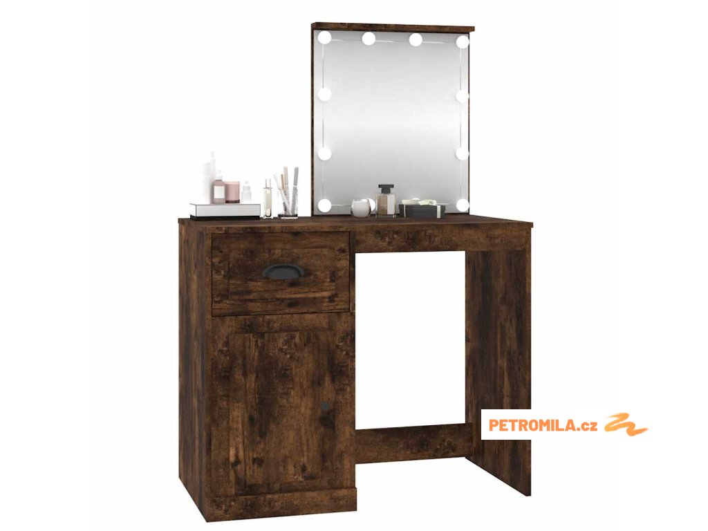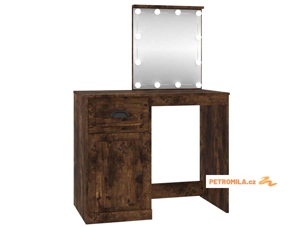 Toaletní stolek s LED kouřový dub 90 x 50 x 132,5 cm kompozit
