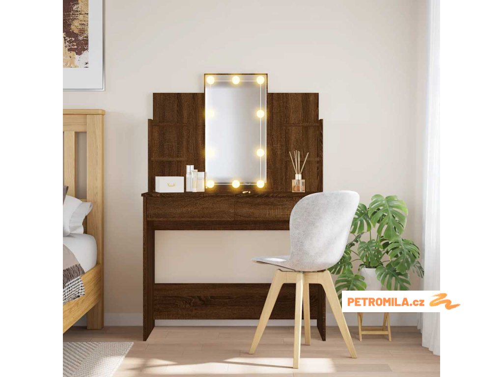 Toaletní stolek s LED osvětlením hnědý dub 96 x 40 x 142 cm