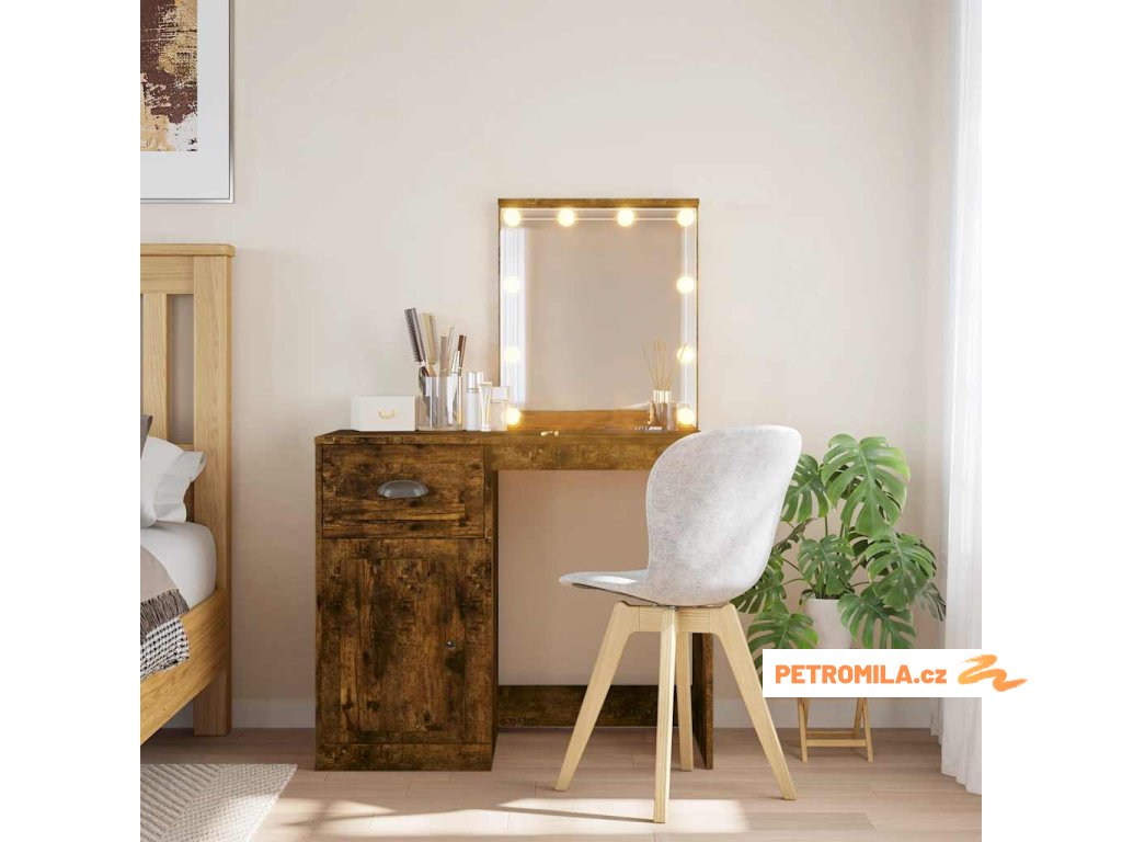 Toaletní stolek s LED osvětlením kouřový dub 90 x 42 x 132,5 cm