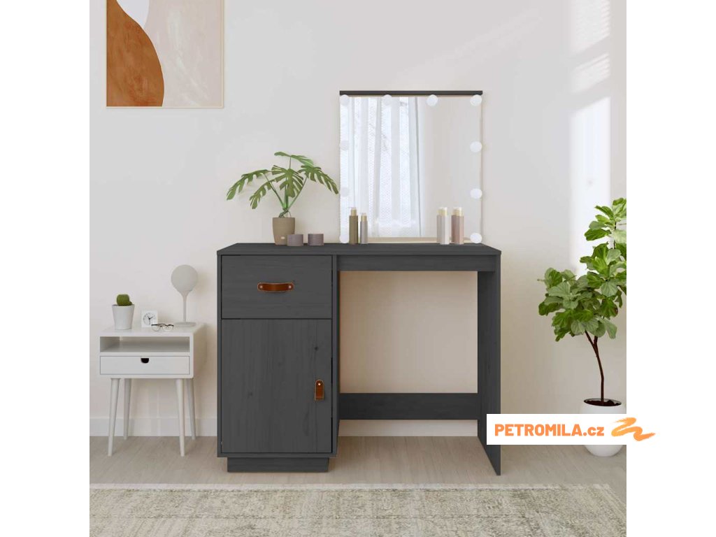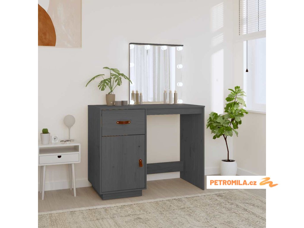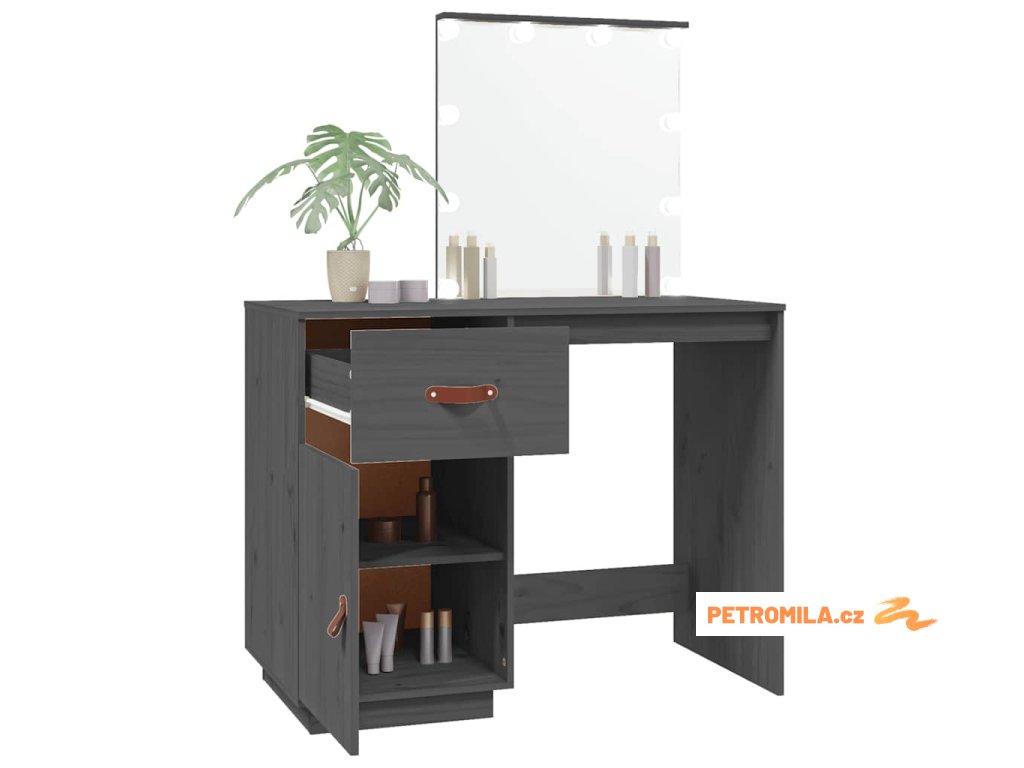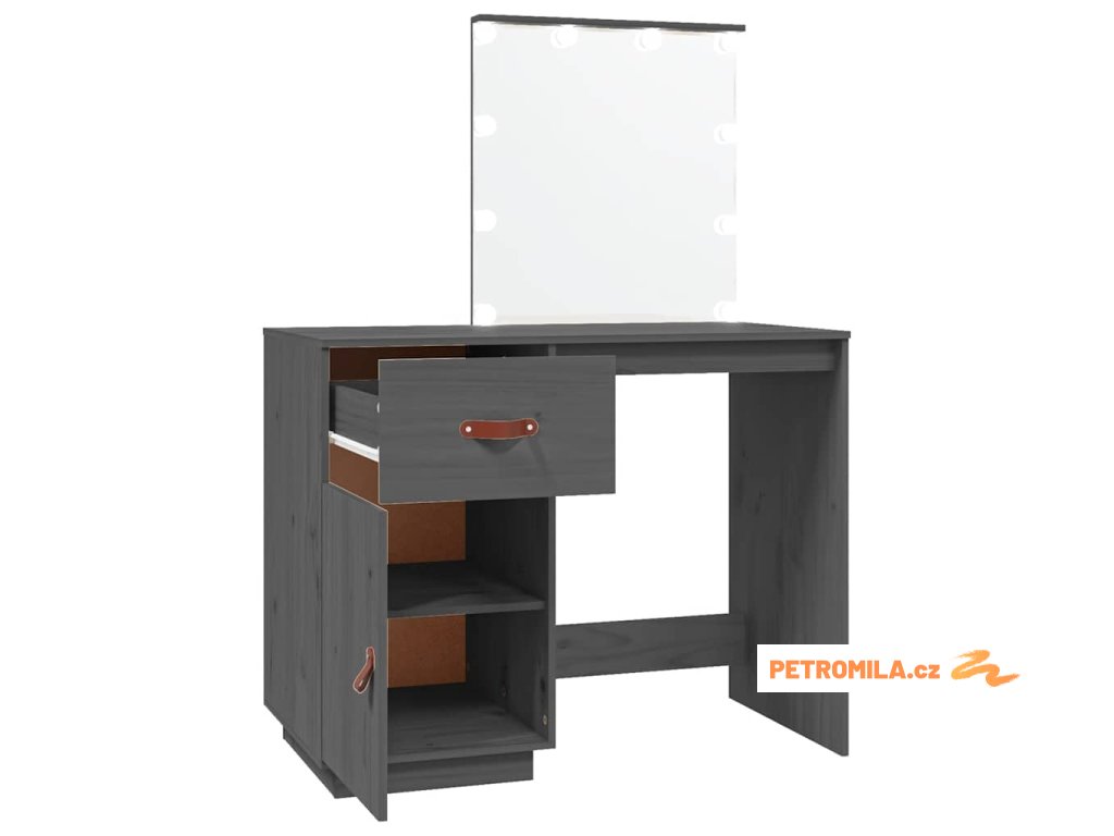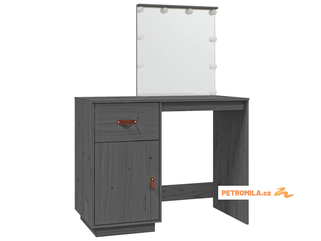 Toaletní stolek s LED šedý 95 x 50 x 133,5 cm masivní borovice