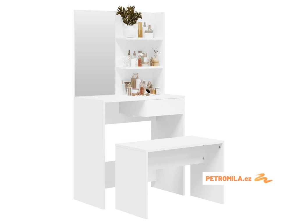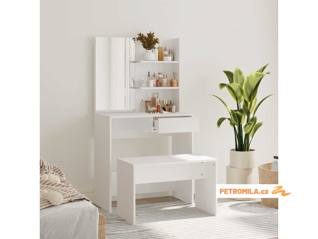 Tento moderní toaletní stolek s příslušenstvím dodá vaší ložnici nadčasový, rafinovaný vzhled. Toaletní stolek se stoličkou je skvělým doplňkem do vaší ložnice a zároveň s ním budete mít kosmetiku hezky po ruce!