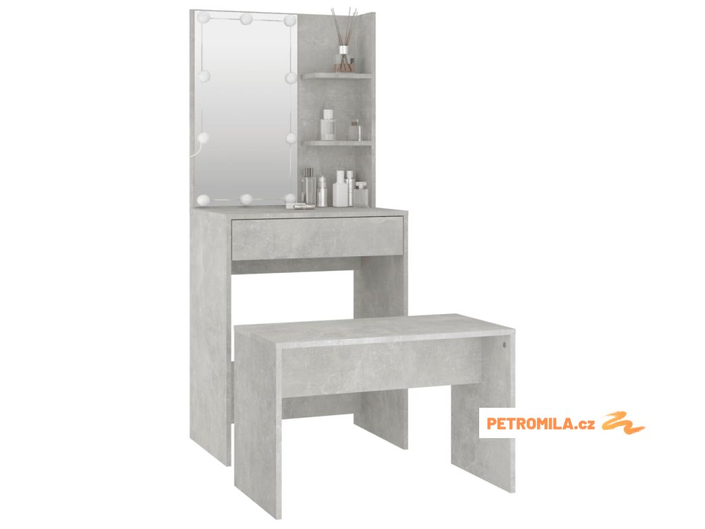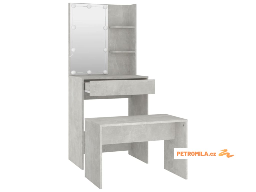 Toaletní stolek sada s LED betonově šedý kompozitní dřevo