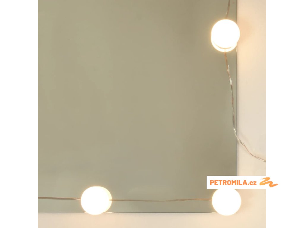 - LED světla: Toaletní stolek má LED žárovky s USB, u kterých lze snadno přepínat režimy z teplé do studené bílé. Integrované LED žárovky kolem zrcadla zvýrazní i vaši krásu.