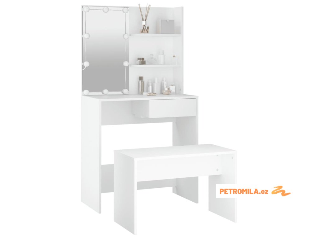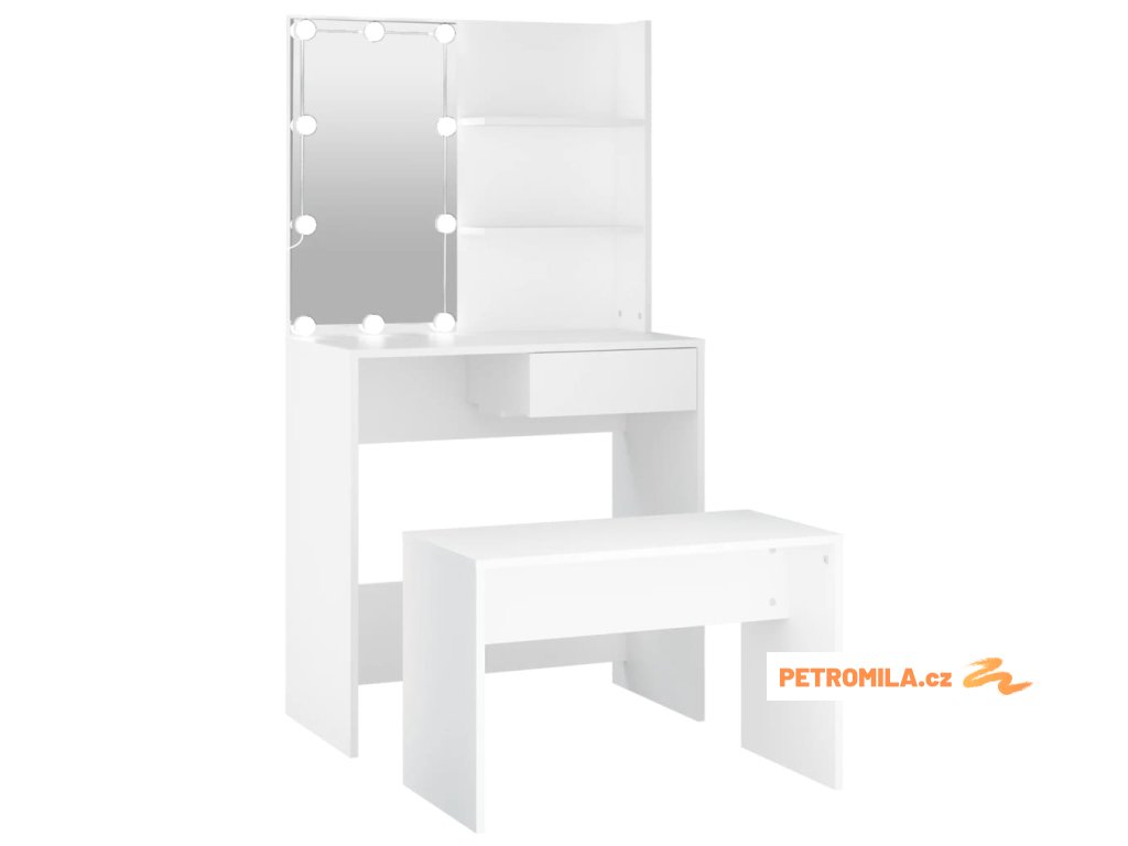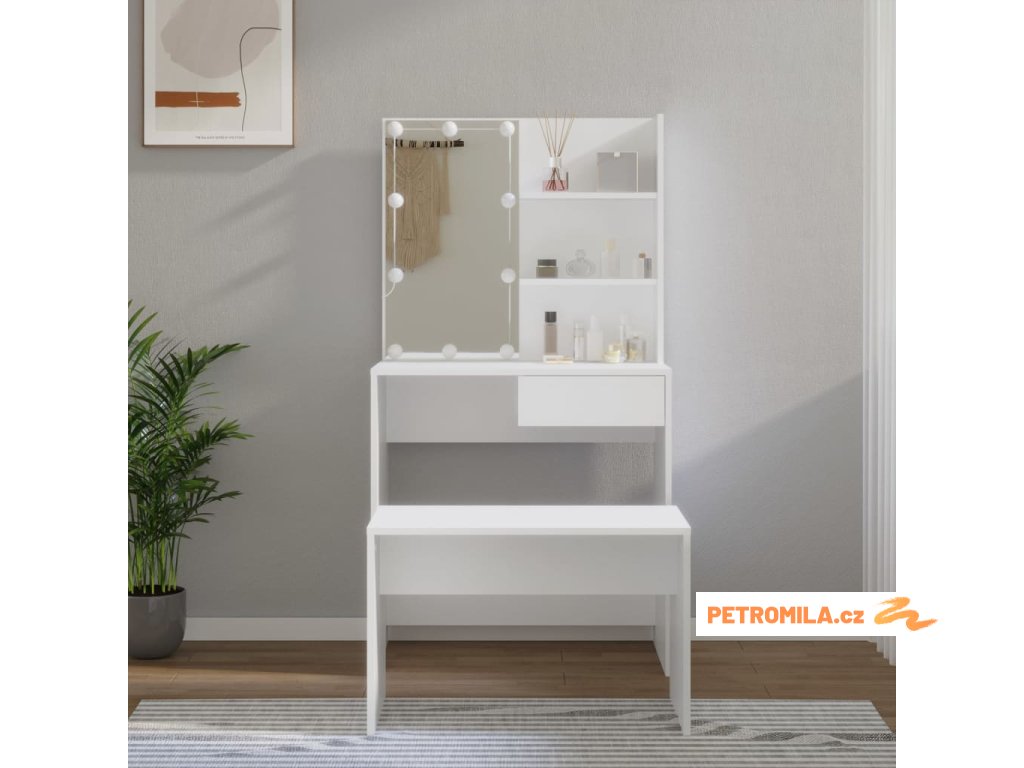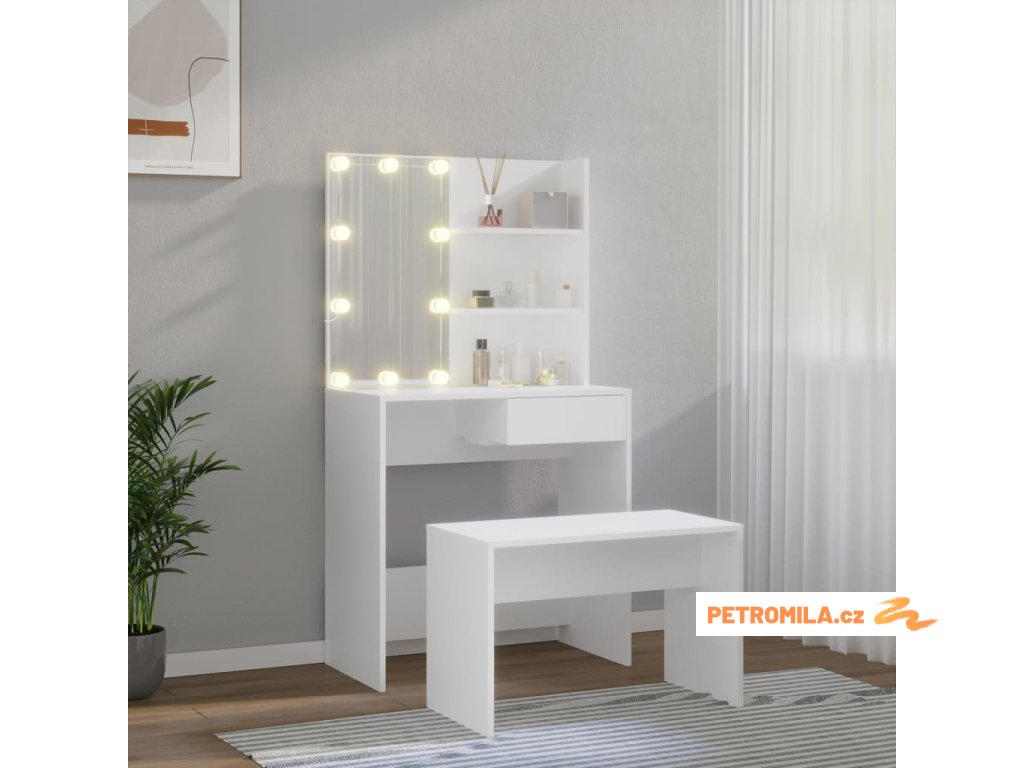 Tento moderní toaletní stolek s příslušenstvím dodá vaší ložnici nadčasový, rafinovaný vzhled. Set toaletního stolku s LED je skvělým doplňkem do vaší ložnice a zároveň s ním budete mít kosmetiku hezky po ruce!