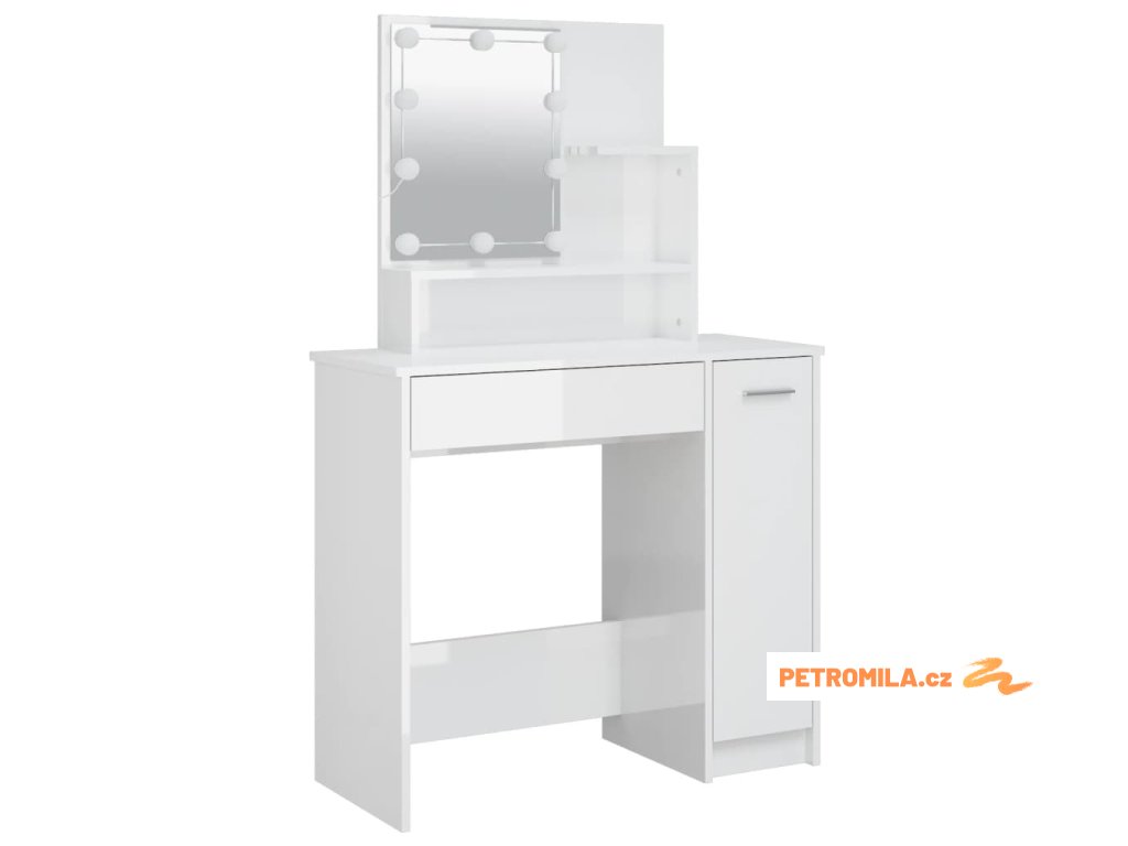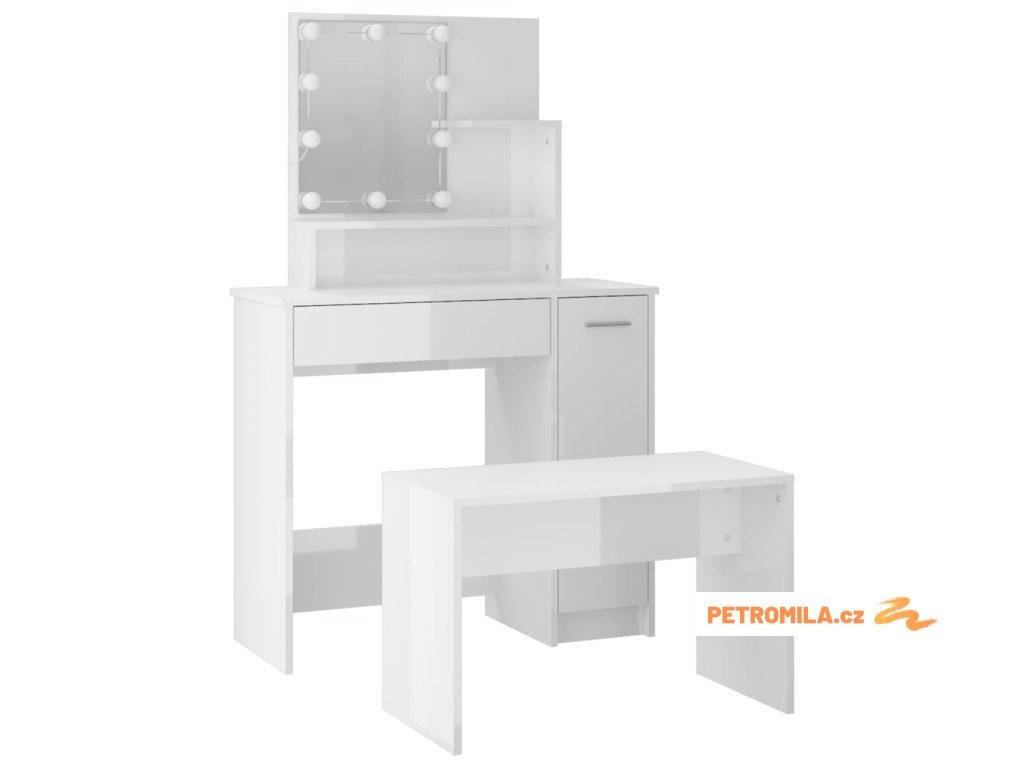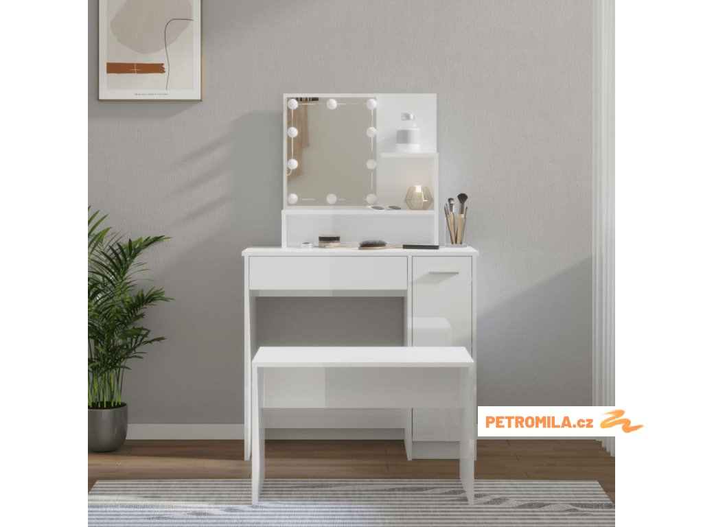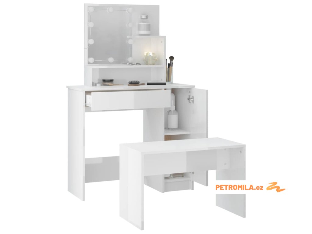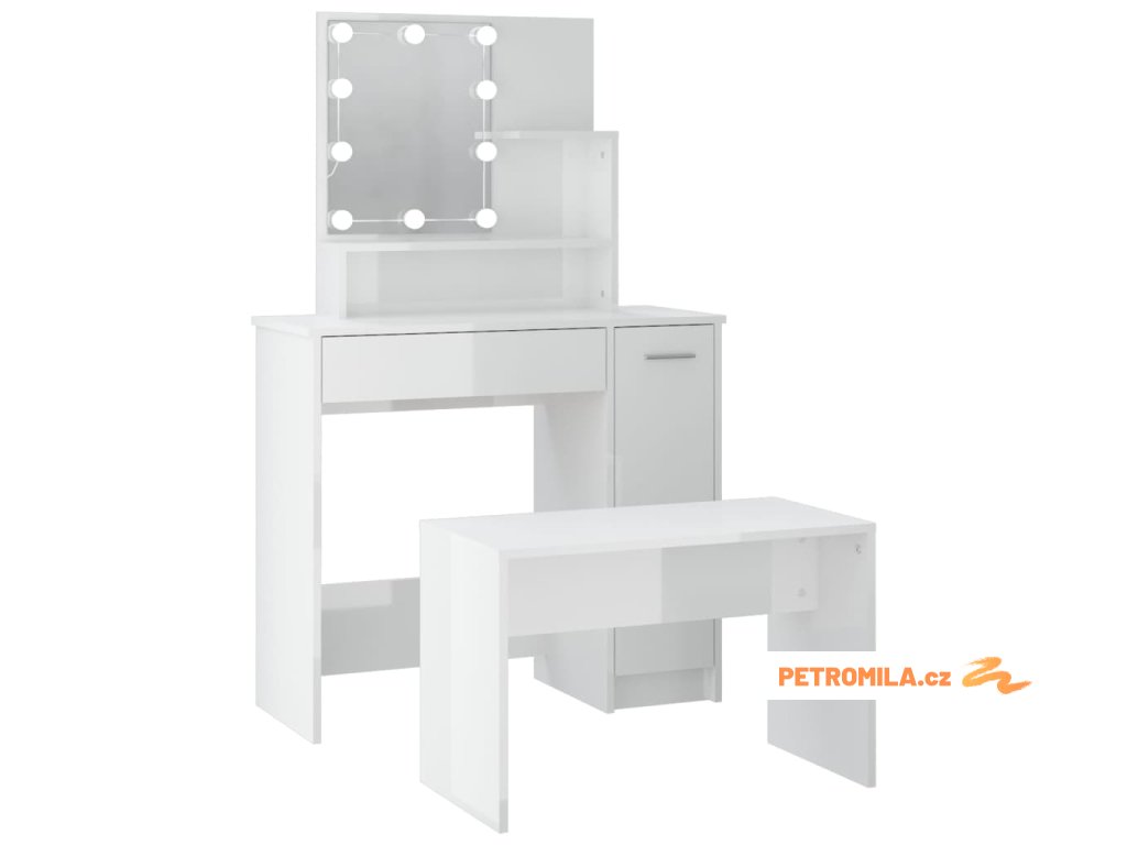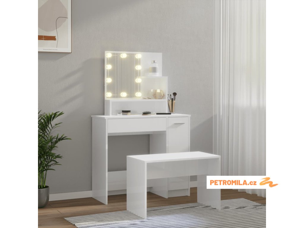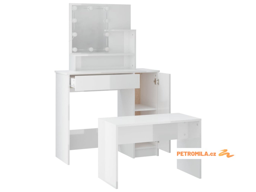 Toaletní stolek sada s LED bílý vysoký lesk kompozitní dřevo