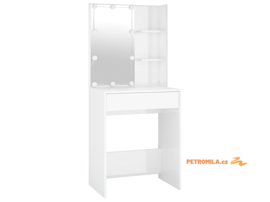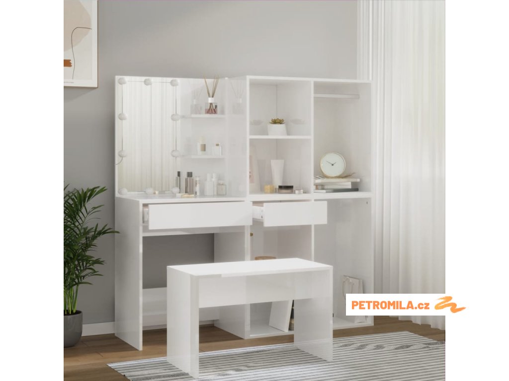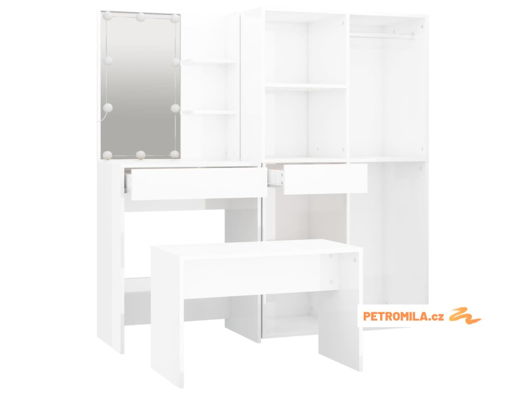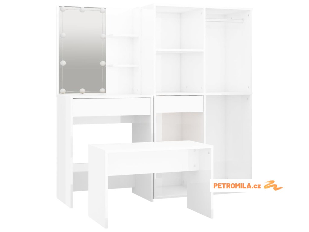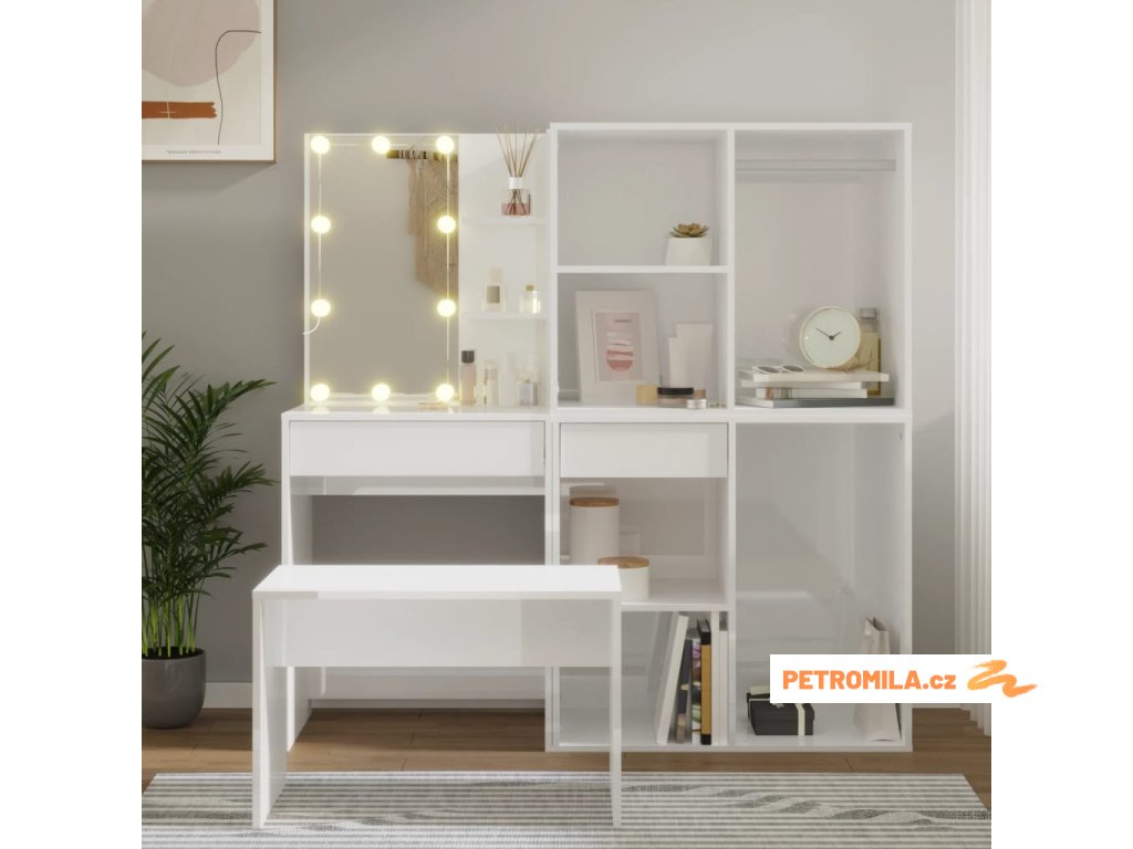 Toaletní stolek sada s LED bílý vysoký lesk kompozitní dřevo