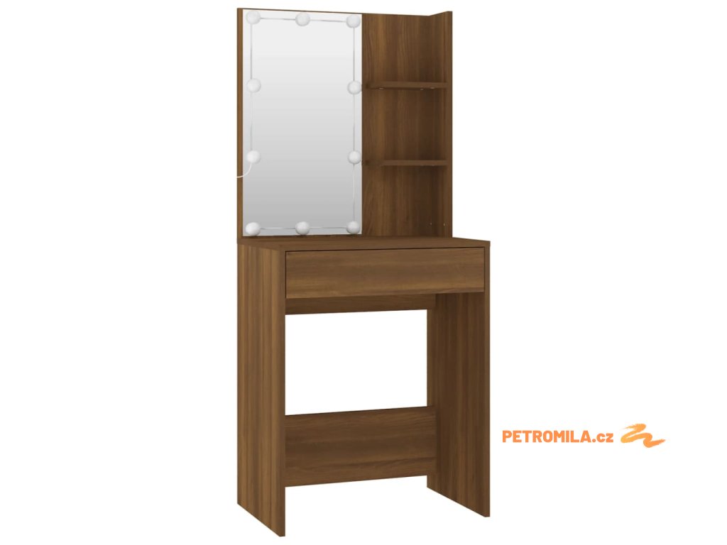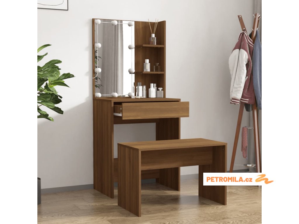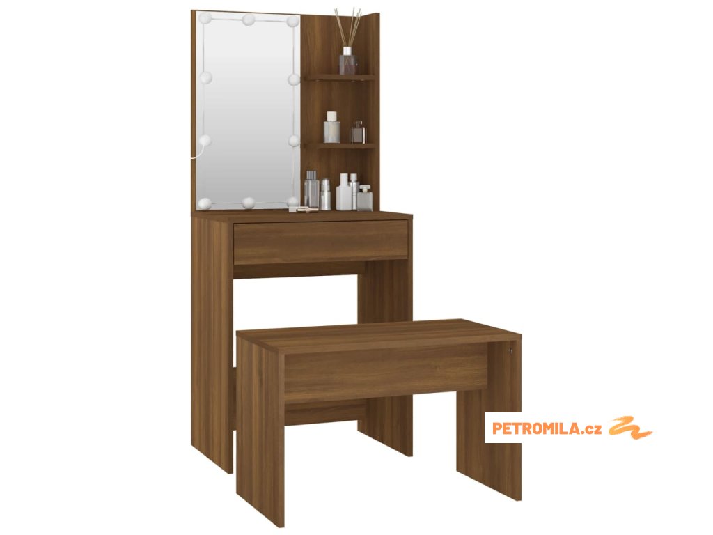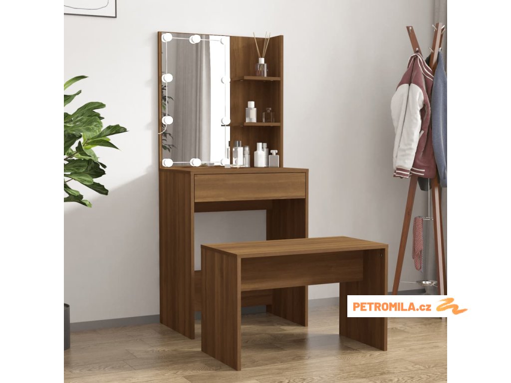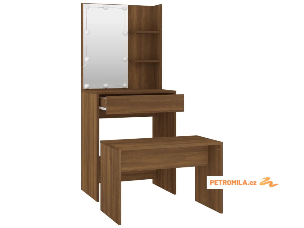 Toaletní stolek sada s LED hnědý dub kompozitní dřevo