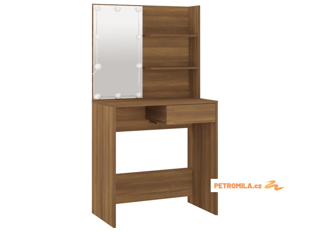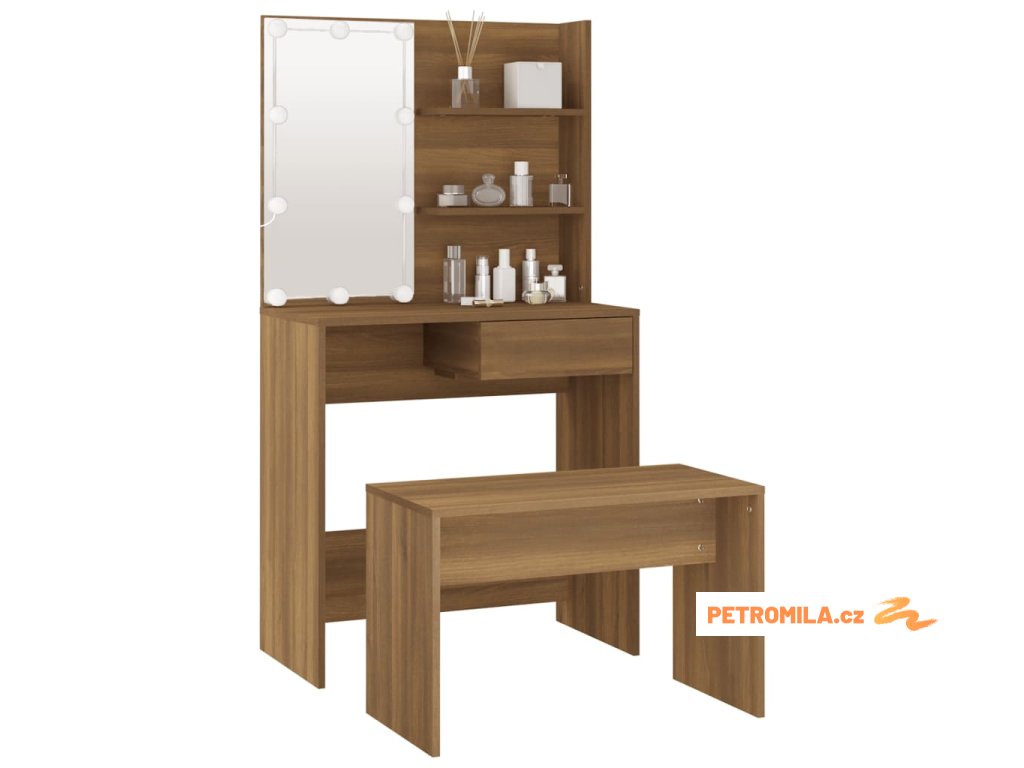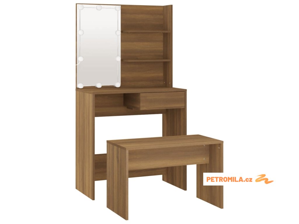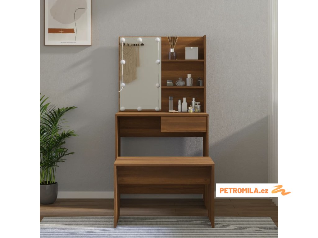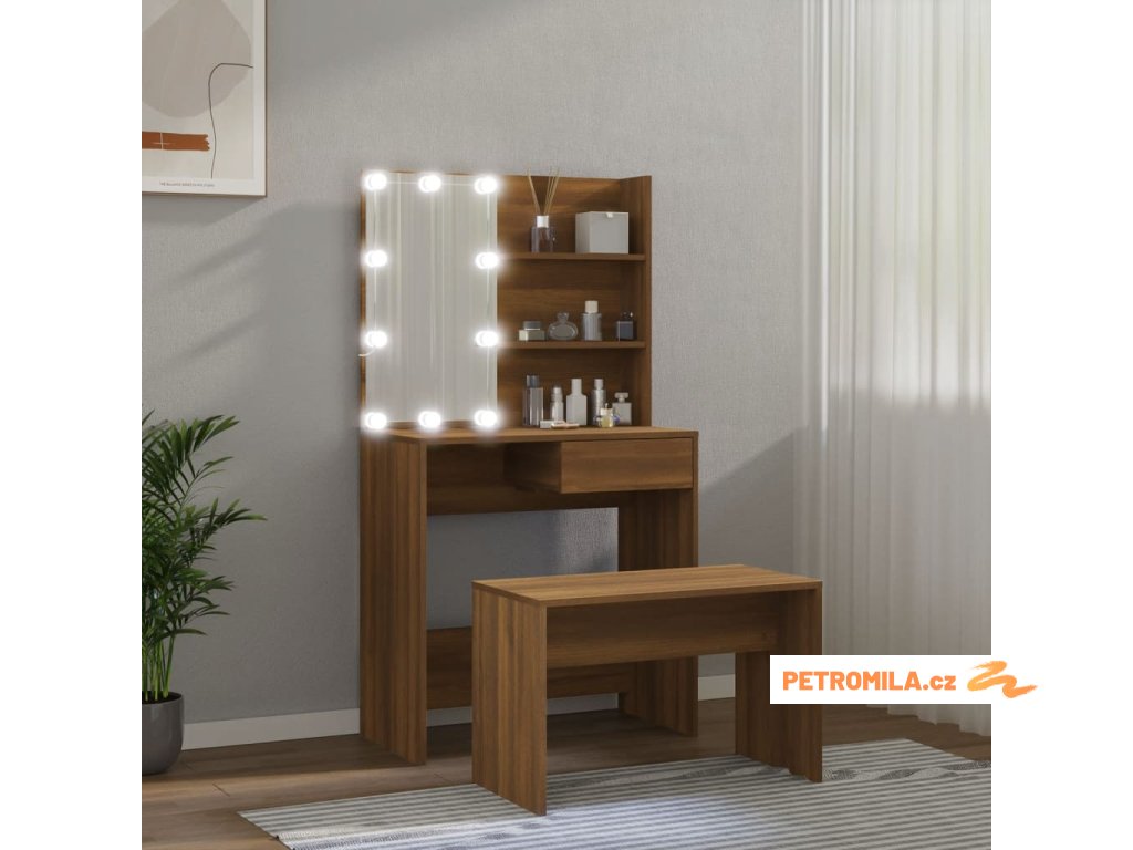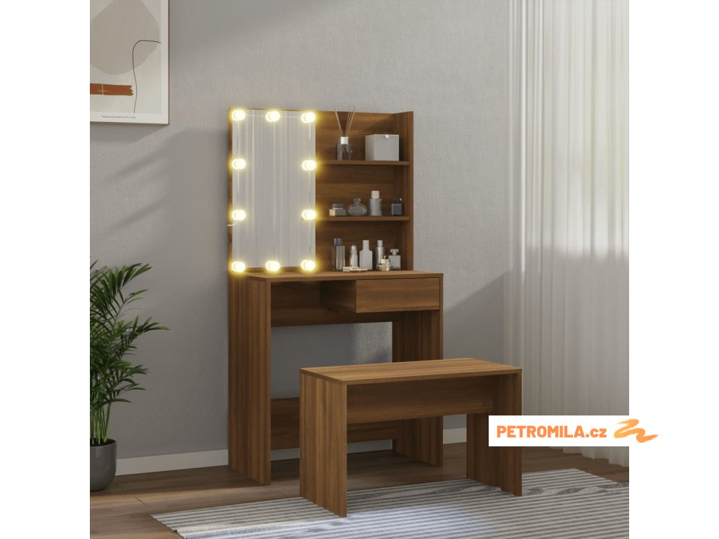 Toaletní stolek sada s LED hnědý dub kompozitní dřevo