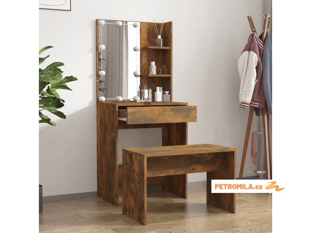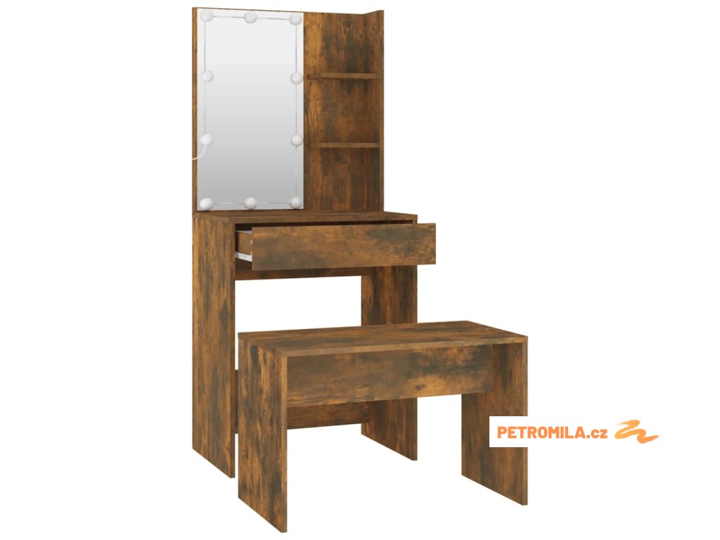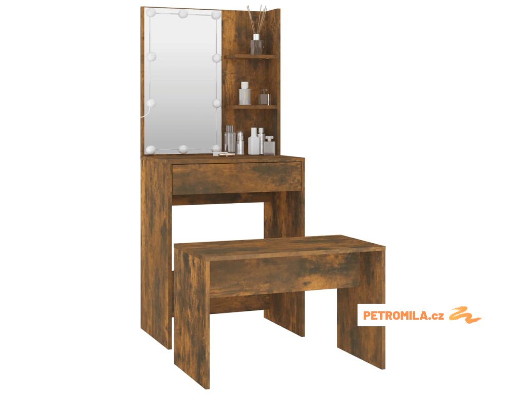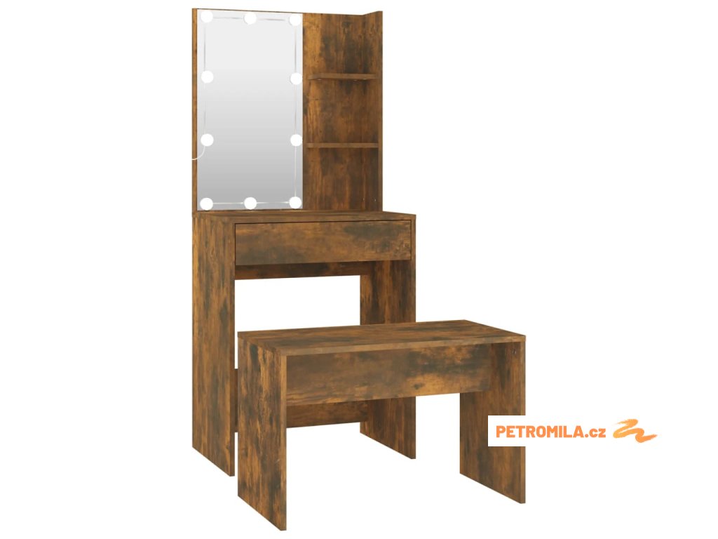 Toaletní stolek sada s LED kouřový dub kompozitní dřevo