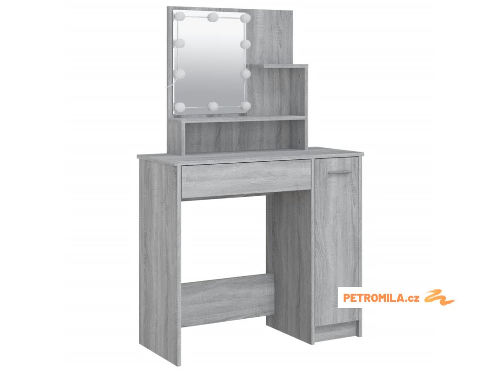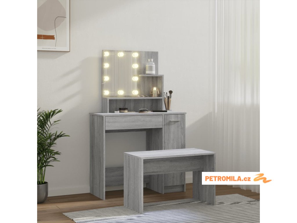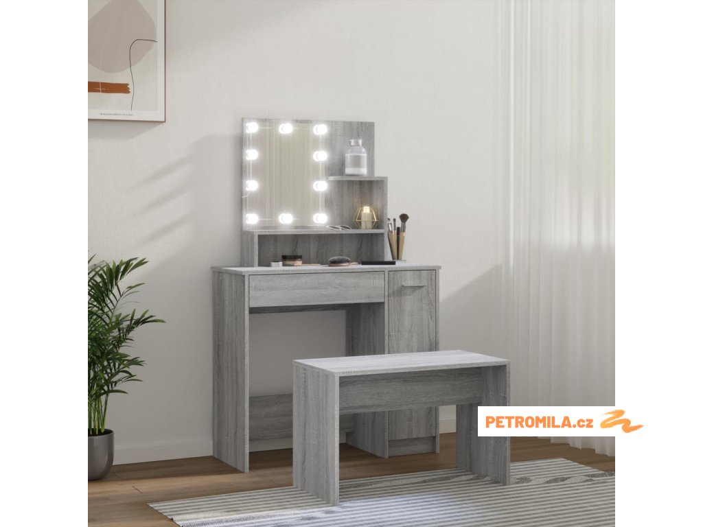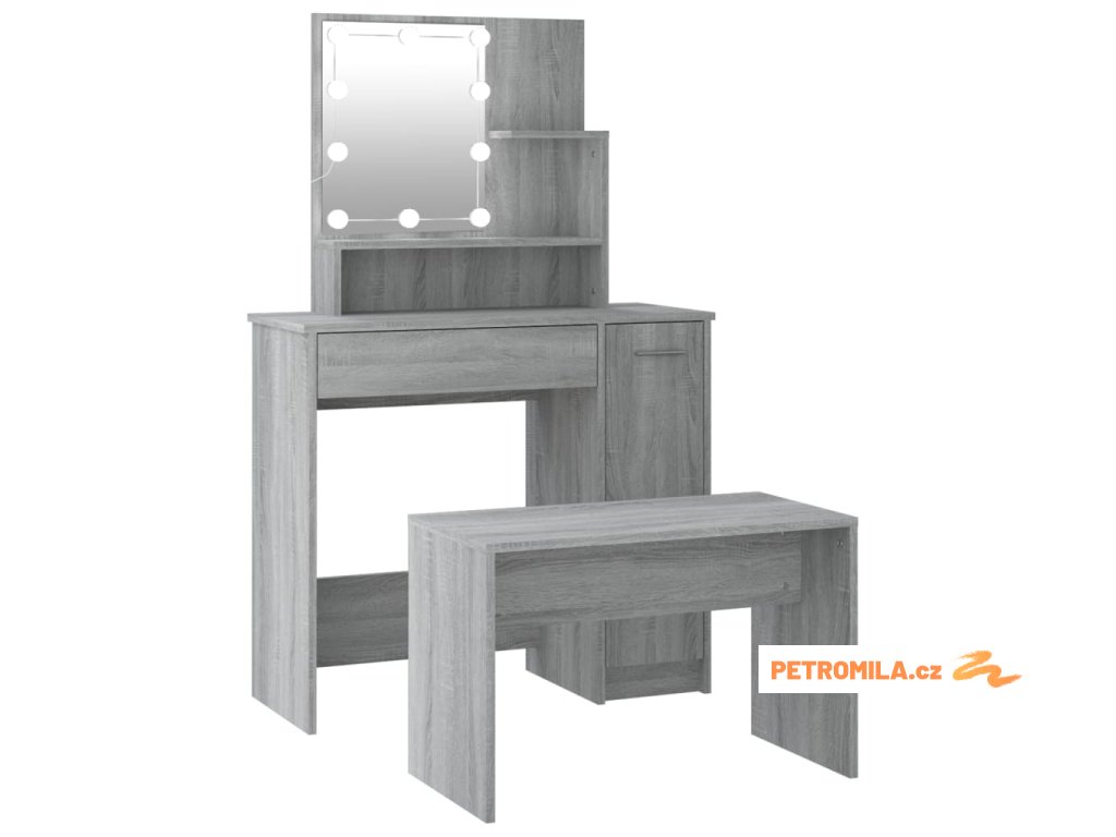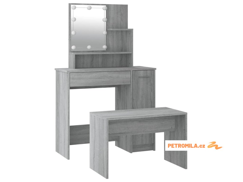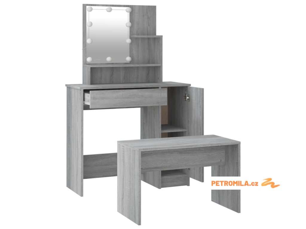 Toaletní stolek sada s LED šedý sonoma kompozitní dřevo