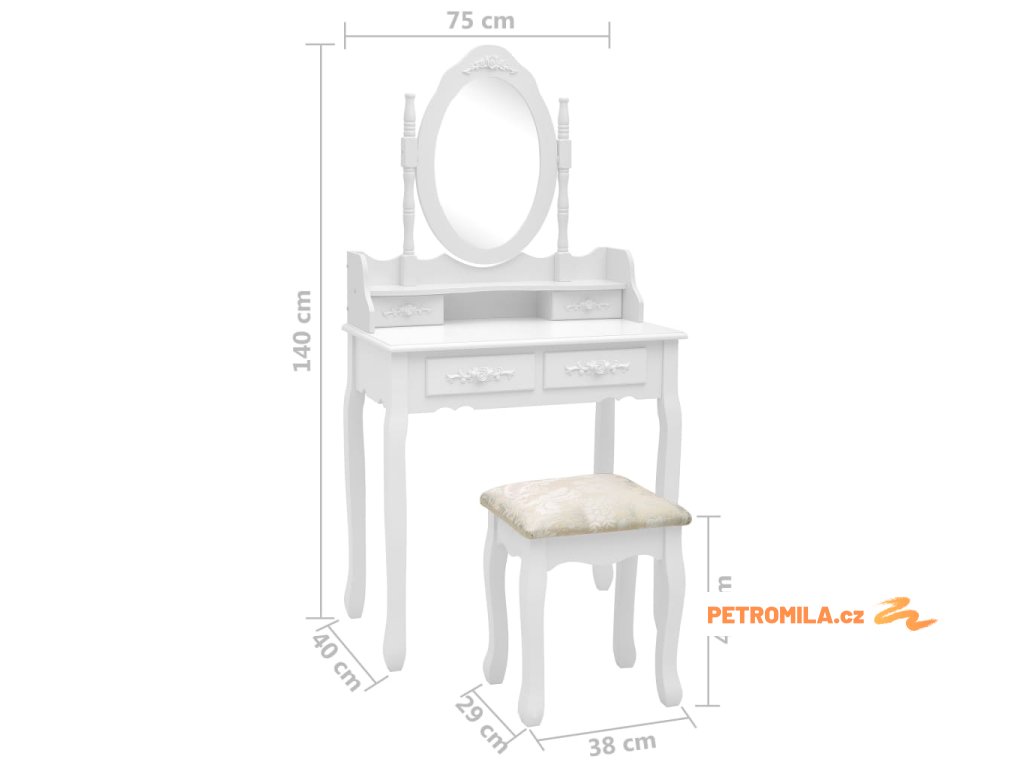 Toaletní stolek se stoličkou bílý 75 x 69 x 140 cm pavlovnia