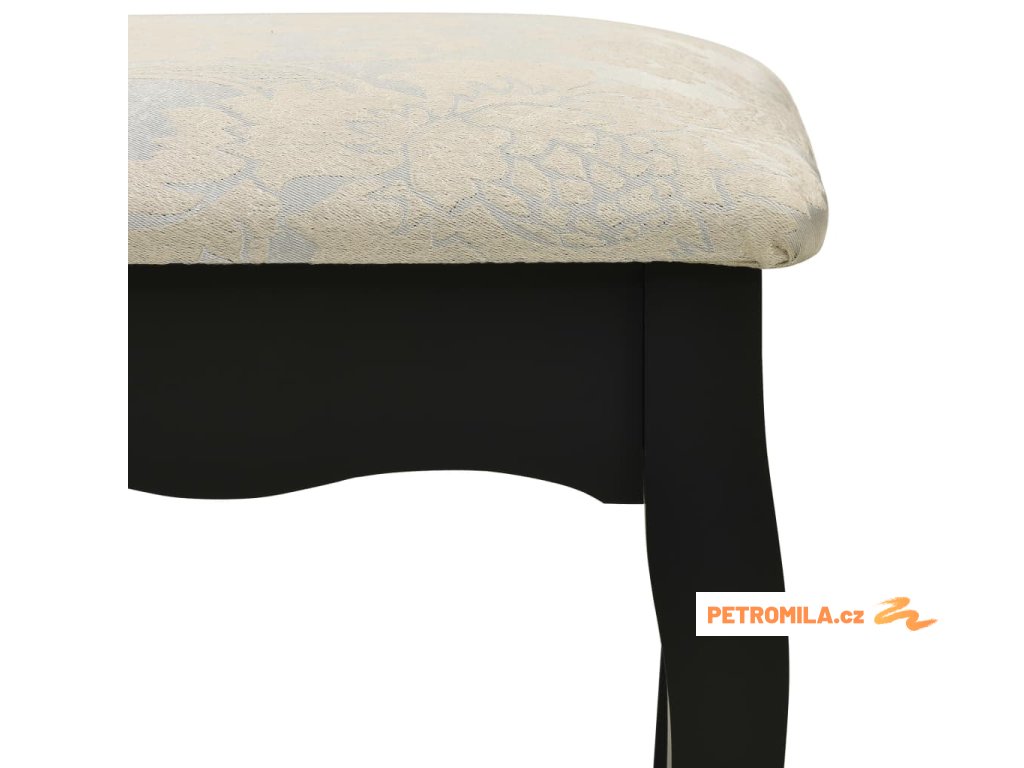 Tento okouzlující toaletní stolek se stoličkou je vyrobený z vysoce kvalitního pavlovniového dřeva. Jeho viktoriánský styl a čistá černá povrchová úprava vnesou do vašeho budoáru či šatny eleganci a krásu. Exkluzivní řemeslné zpracování je dalším z charakteristických znaků tohoto setu se stolkem a stoličkou.