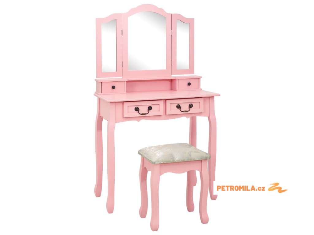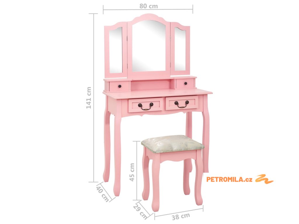 Toaletní stolek se stoličkou růžový 80 x 69 x 141 cm pavlovnia