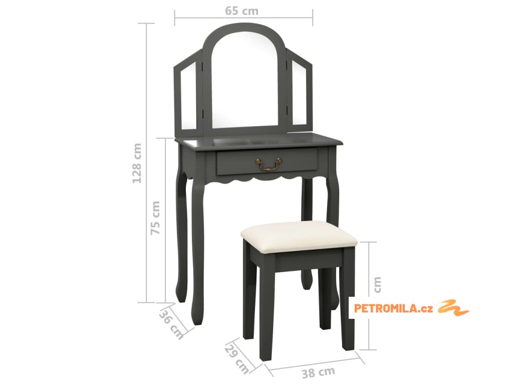 Toaletní stolek se stoličkou šedý 65x36x128 cm pavlovnia MDF
