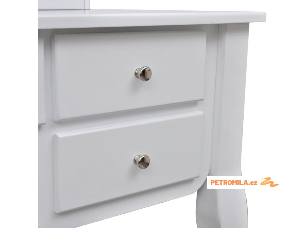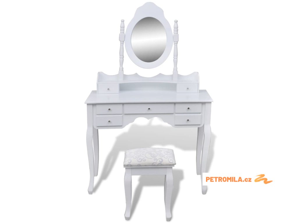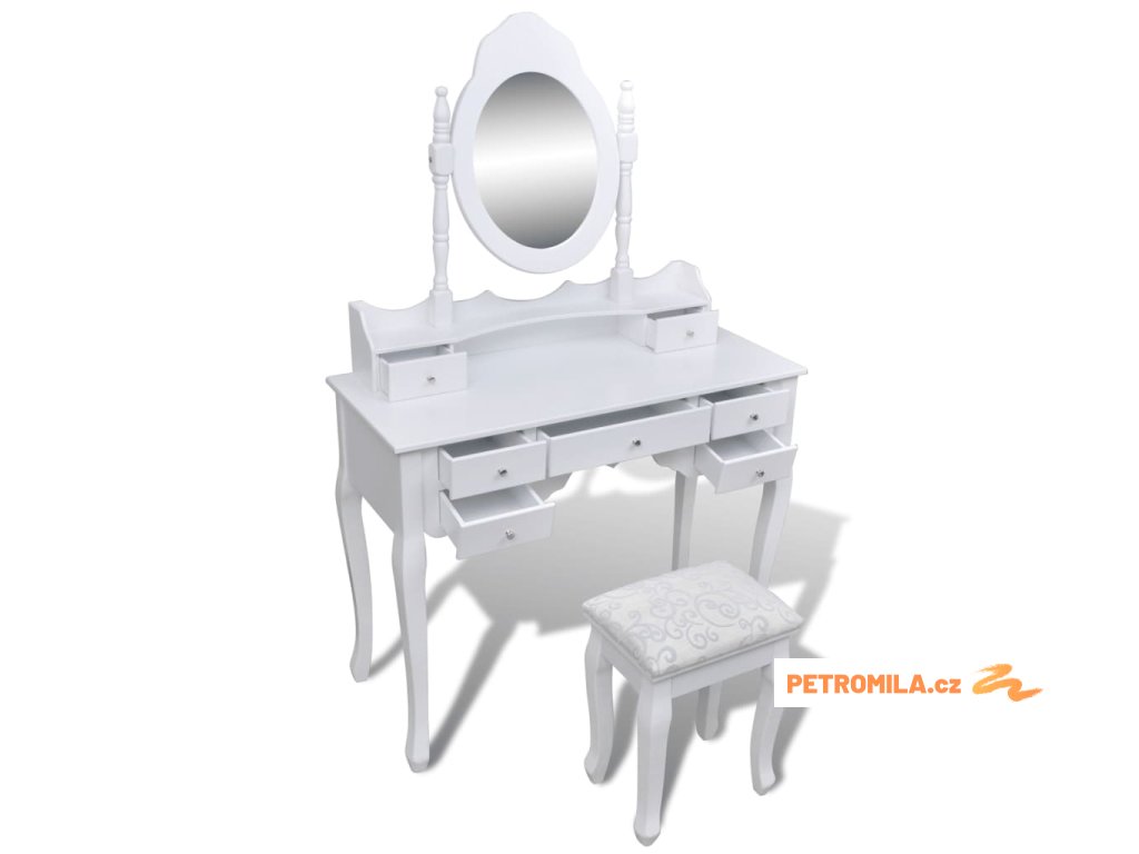 Toaletní stolek se zrcadlem, stoličkou a 7 šuplíky bílý