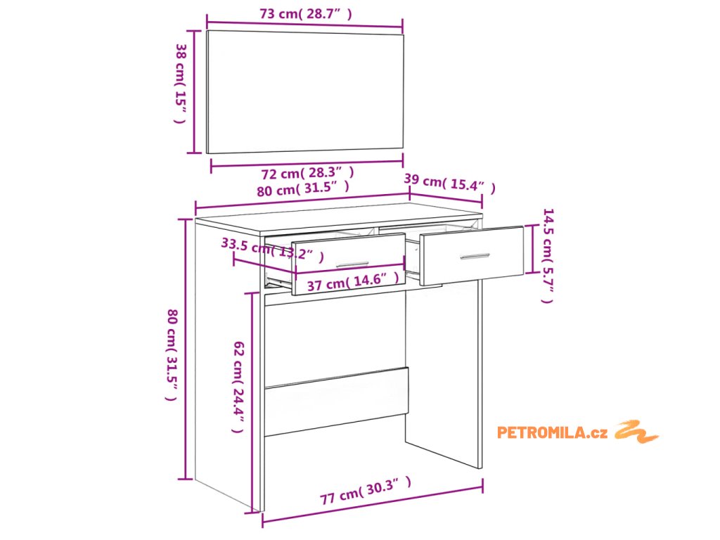 Toaletní stolek se zrcadlem dub sonoma 80 x 39 x 80 cm