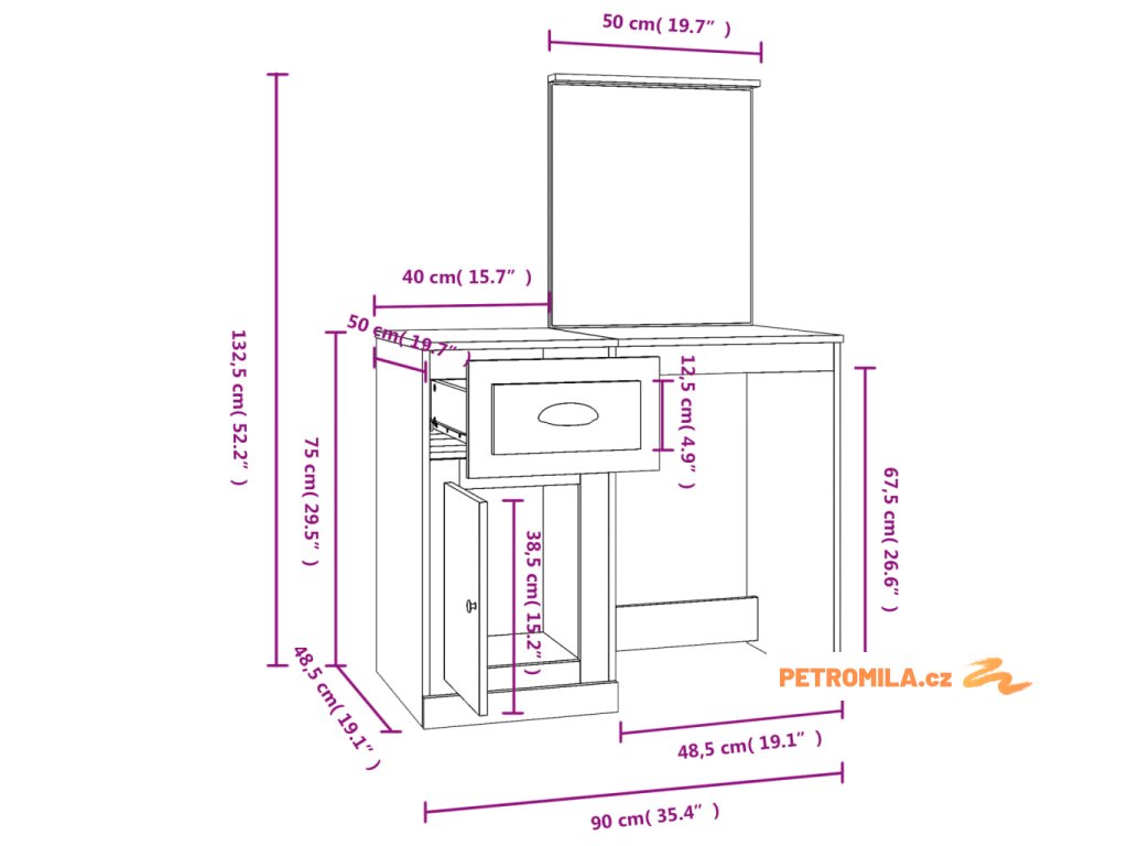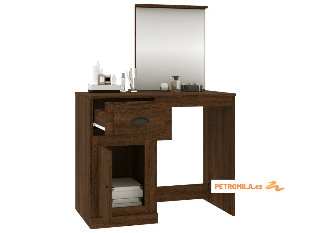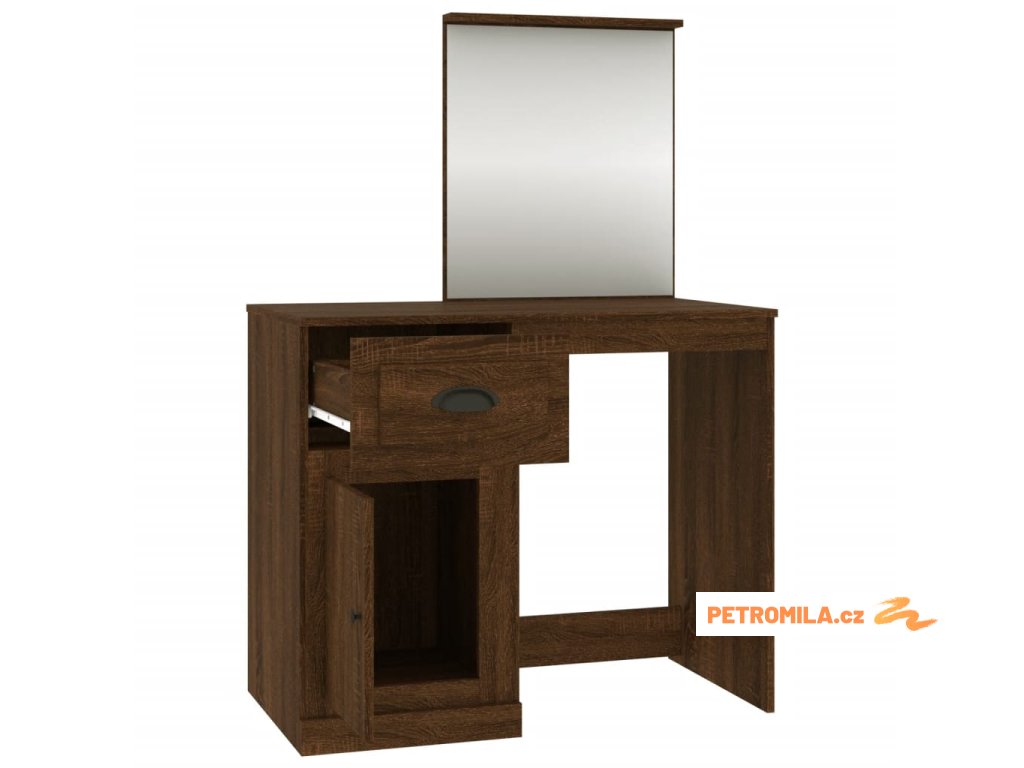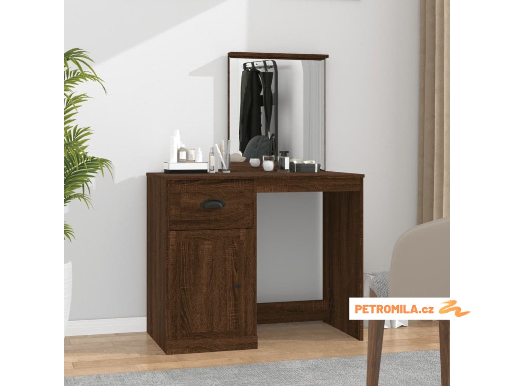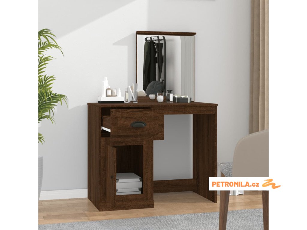 Toaletní stolek se zrcadlem hnědý dub 90x50x132,5 cm kompozit