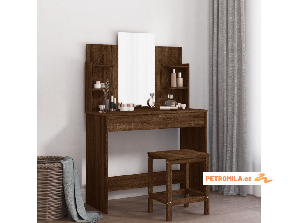 Toaletní stolek se zrcadlem hnědý dub 96 x 39 x 142 cm