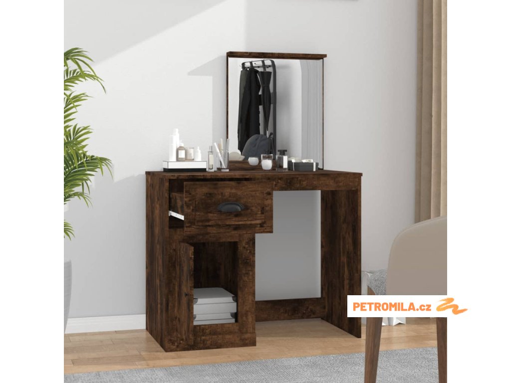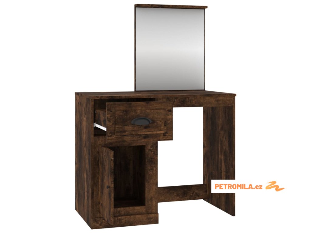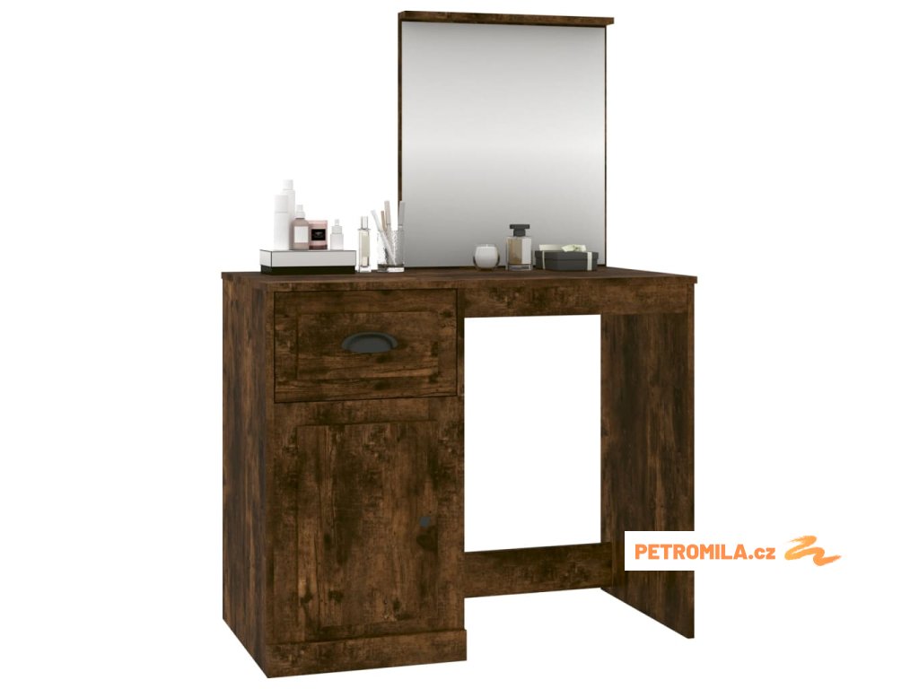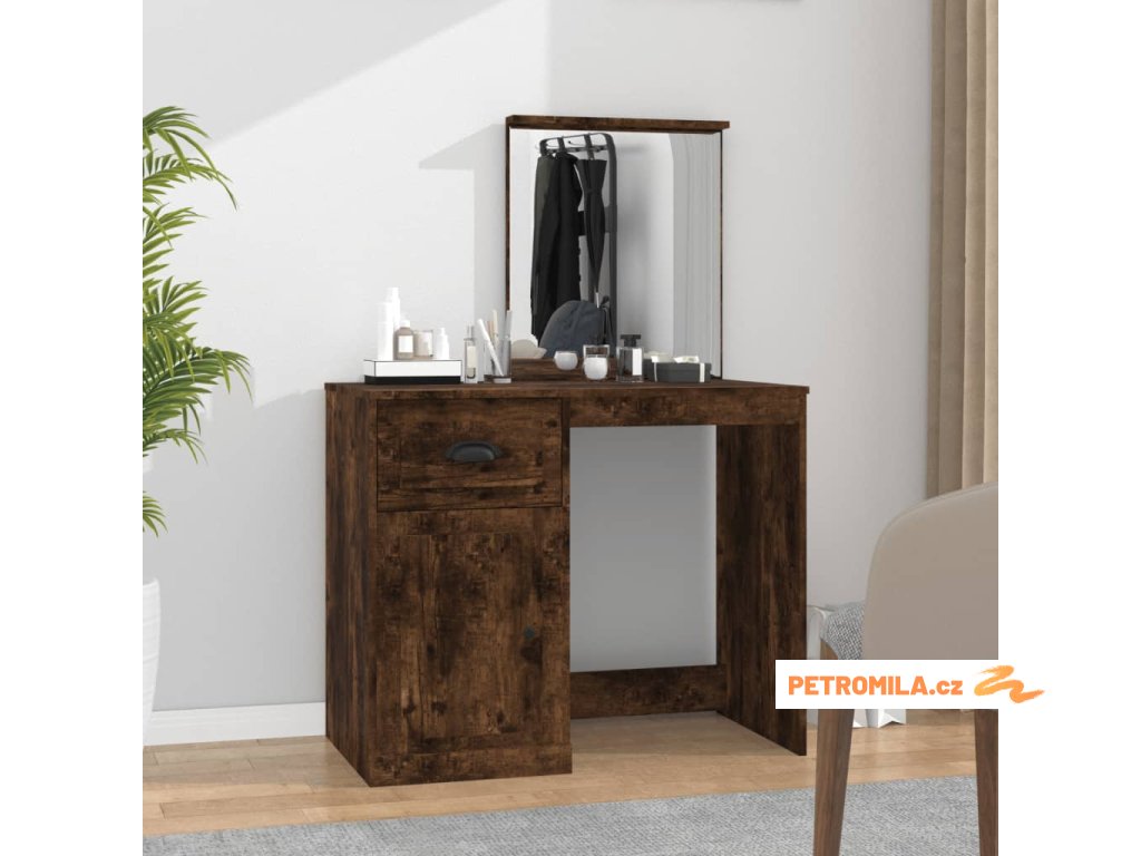 Toaletní stolek se zrcadlem kouřový dub 90x50x132,5 cm kompozit