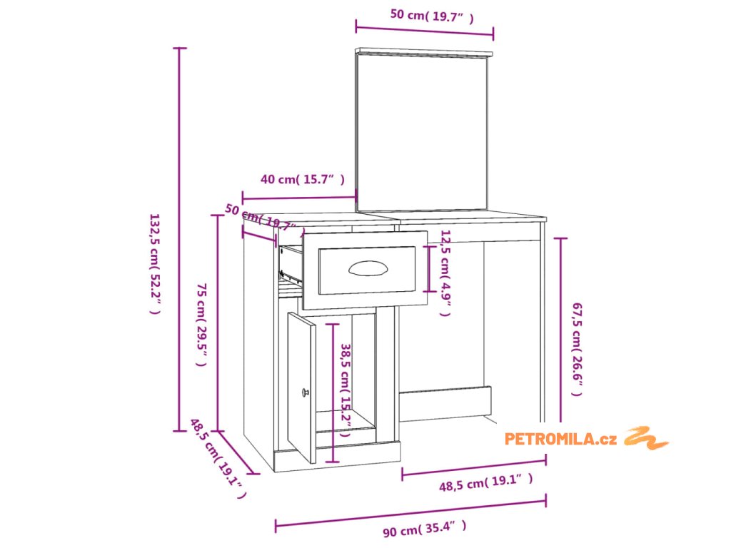 - Kosmetické zrcátko: Make-up stolek se zrcadlem je ideální pro vaši každodenní kosmetickou rutinu. Zrcadlo vám umožní pečovat o pleť a nanášet make-up!
