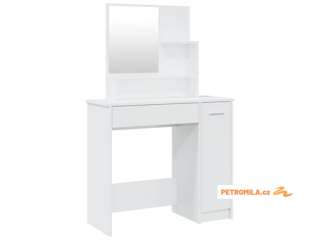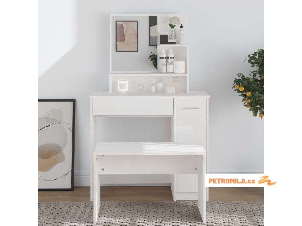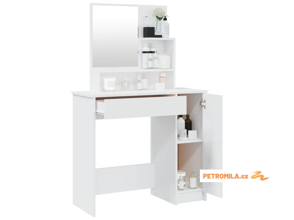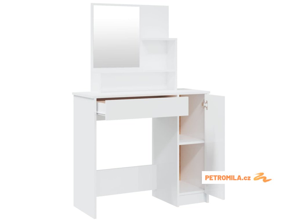 Toaletní stolek se zrcadlem lesklý bílý 86,5 x 35 x 136 cm